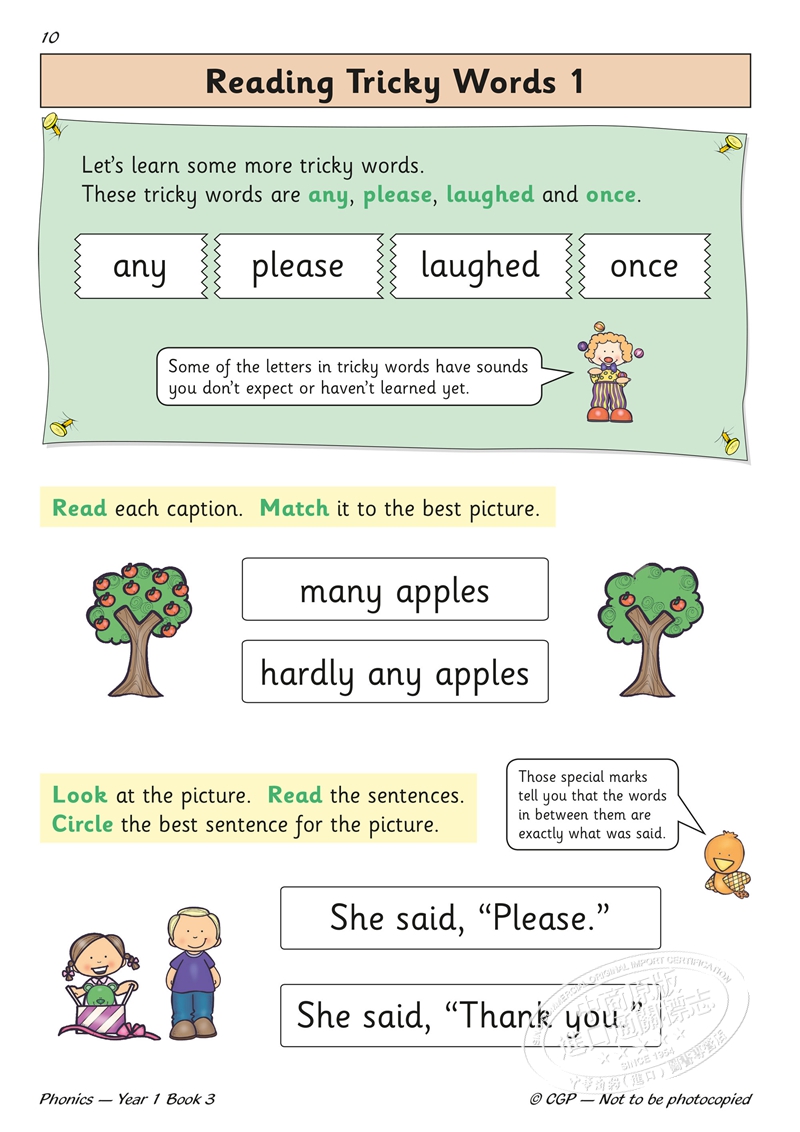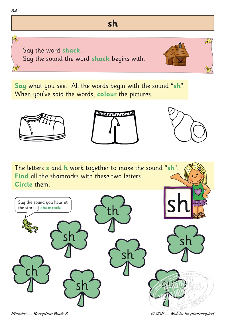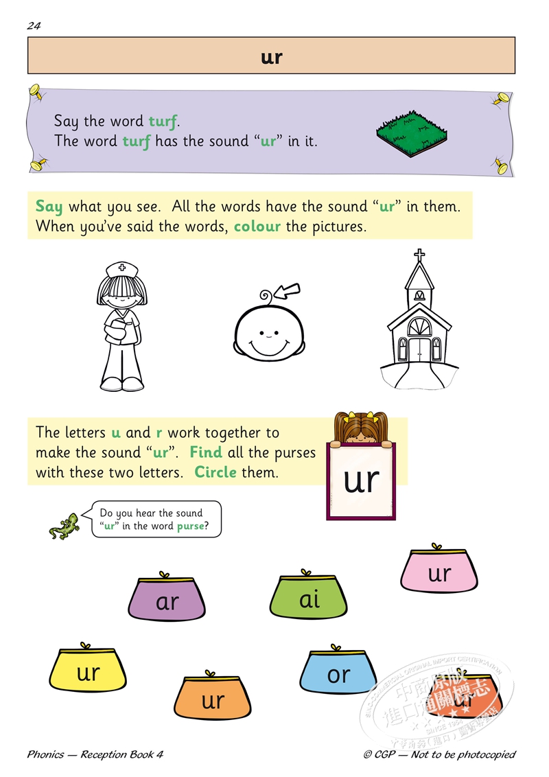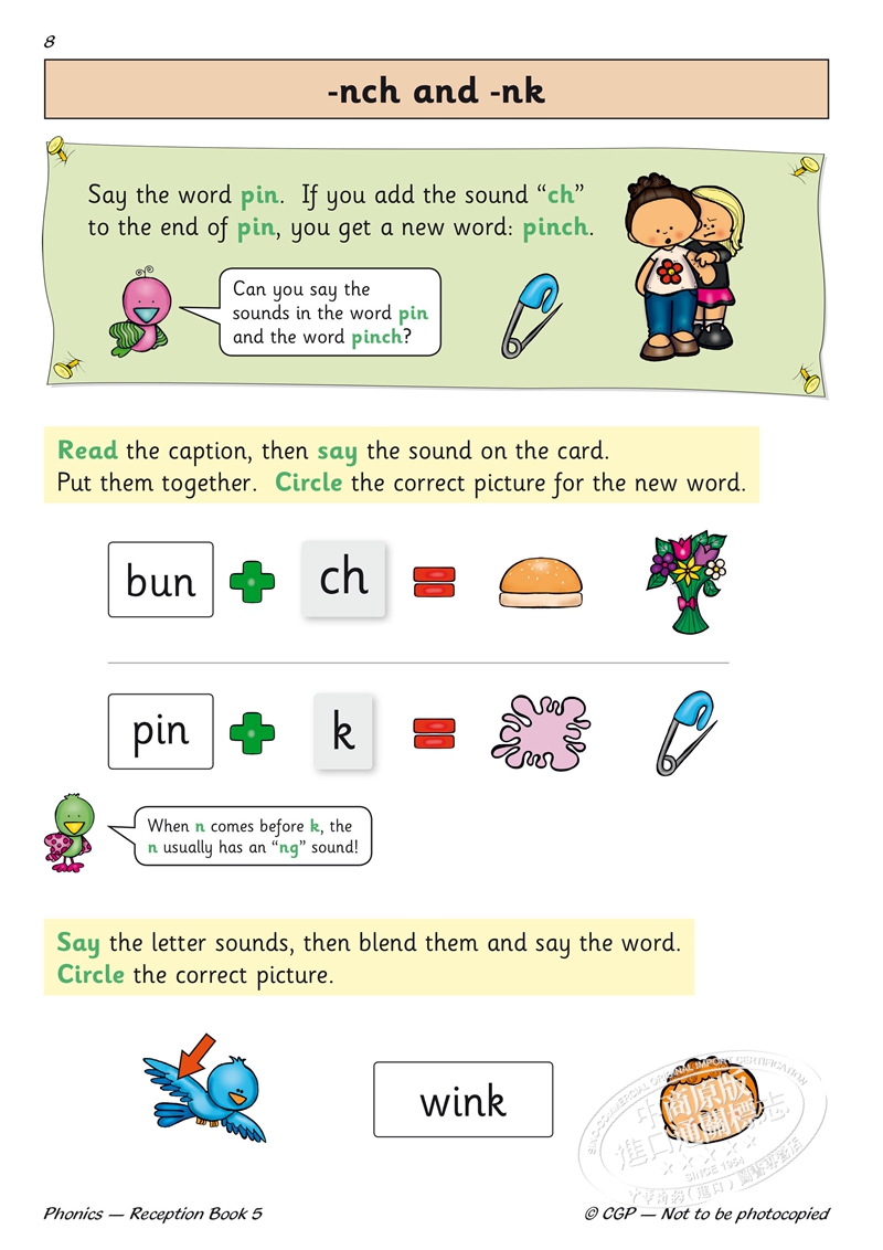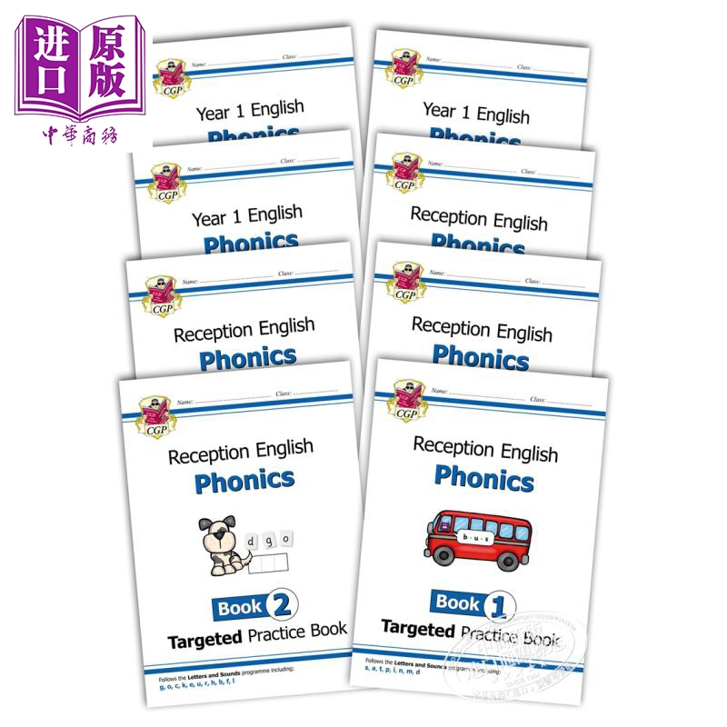 预售 英国CGP原版 Reception and KS1 English Phonics 自然拼读 幼儿英语 小学学前练习教辅8册 4-6岁 含答案