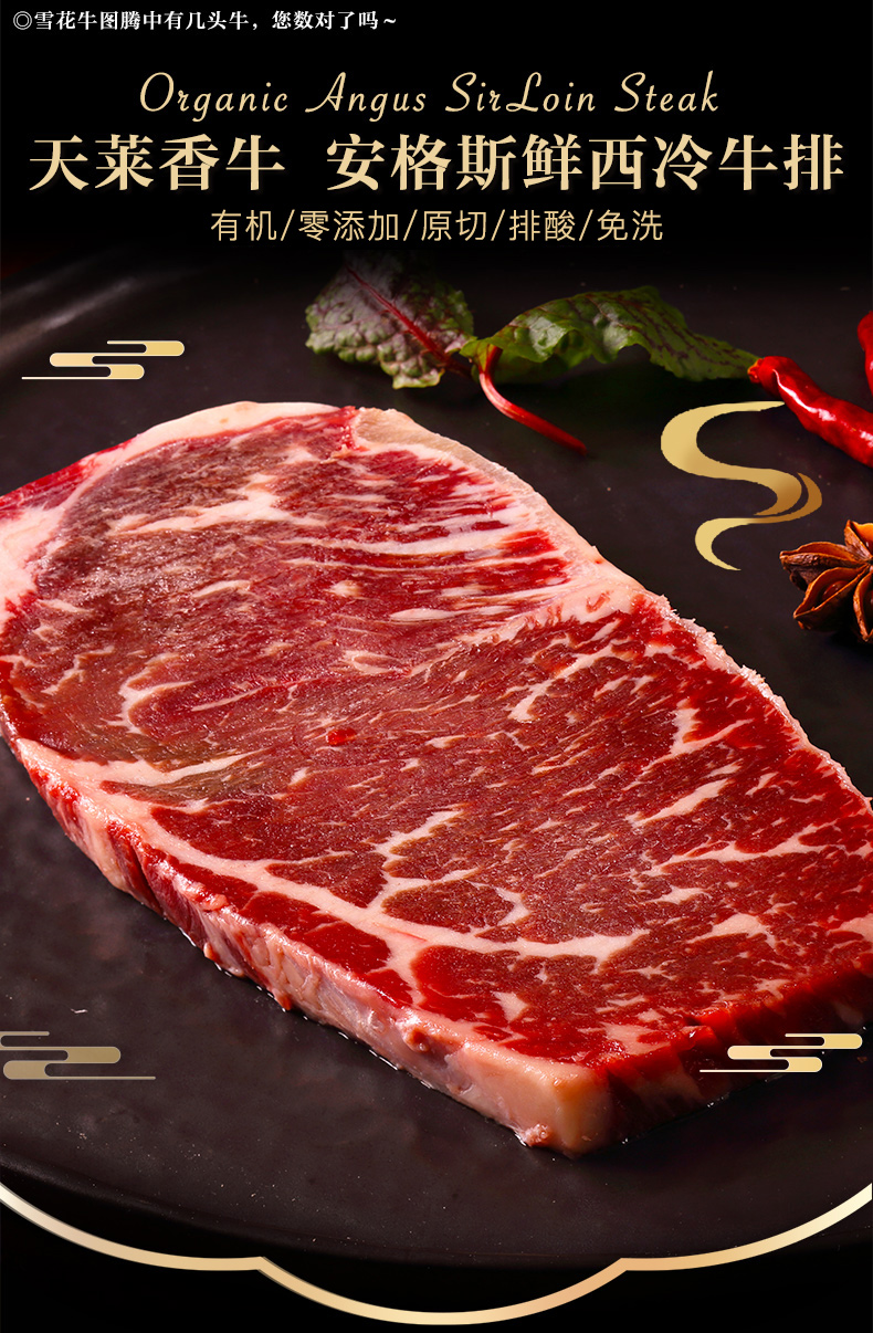 【冷鲜预售】有机天莱香牛国产安格斯西冷牛排180g/盒*5盒 原切外脊