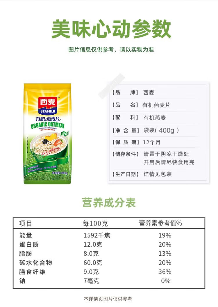 西麦 有机燕麦片 400g(新老包装随机发货)