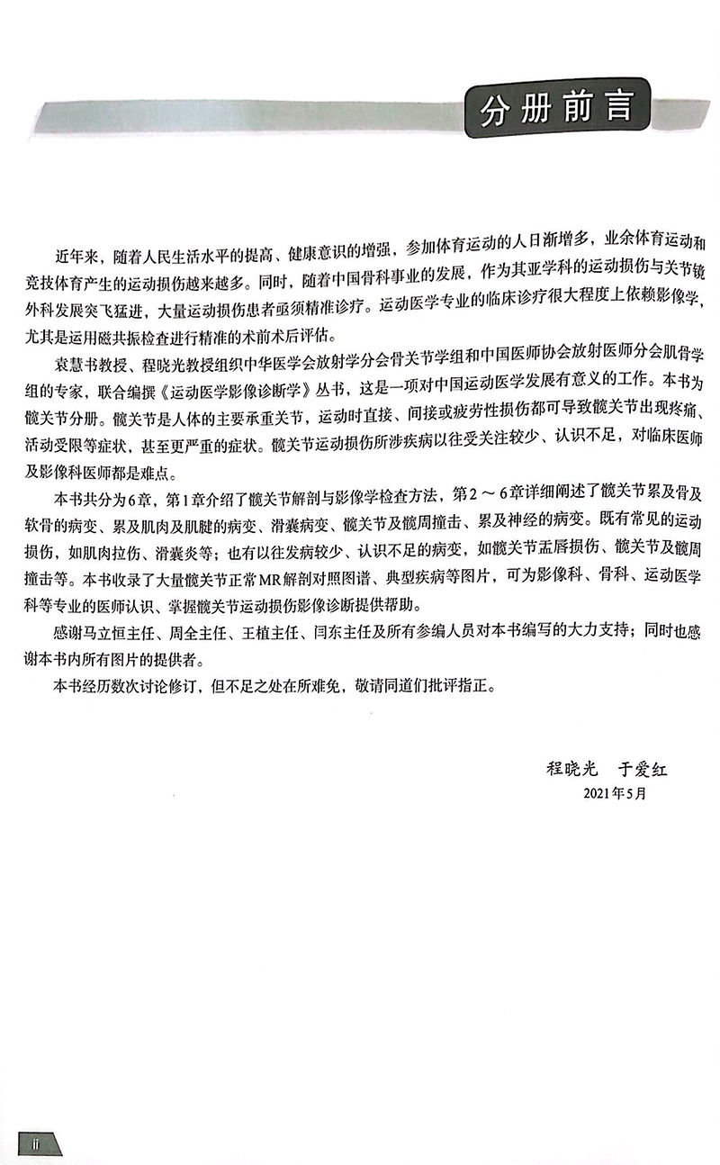运动医学影像诊断学 髋关节分册 髋关节解剖与影像学检查方法 髋关节累及软骨的病变等 程晓光 于爱红 编 9787030684820科学出版社