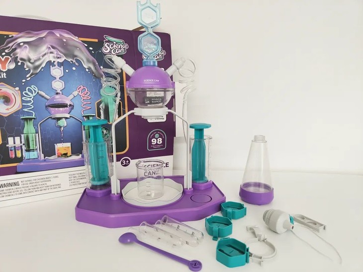 这套疯狂实验套装满满一大盒子的零件,组装好后就是一个充满科技感的炫酷实验台,科学、专业,瞬间就能吸引孩子眼球。