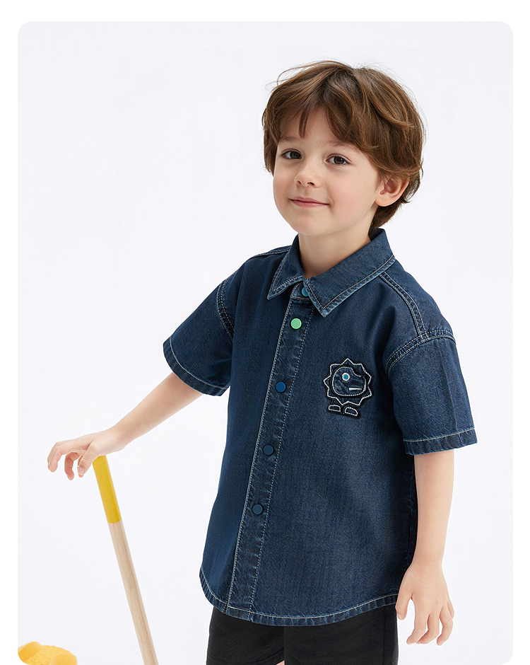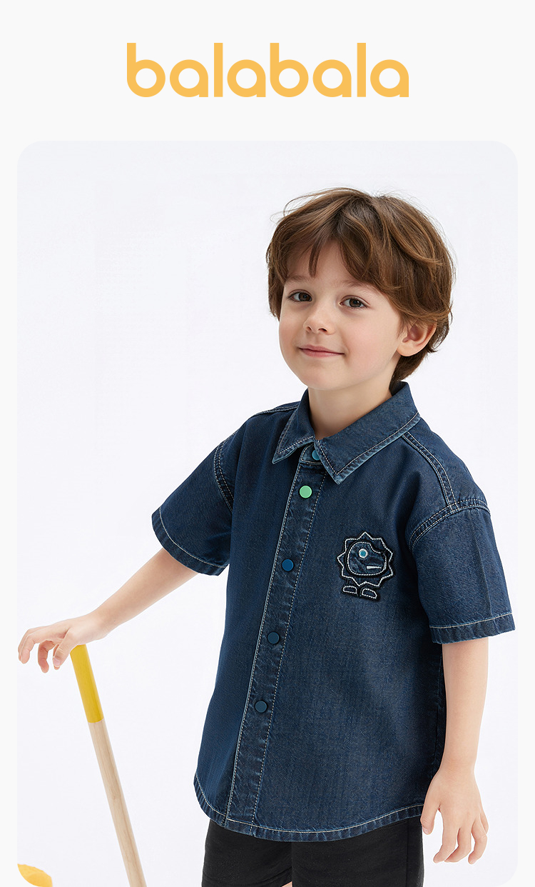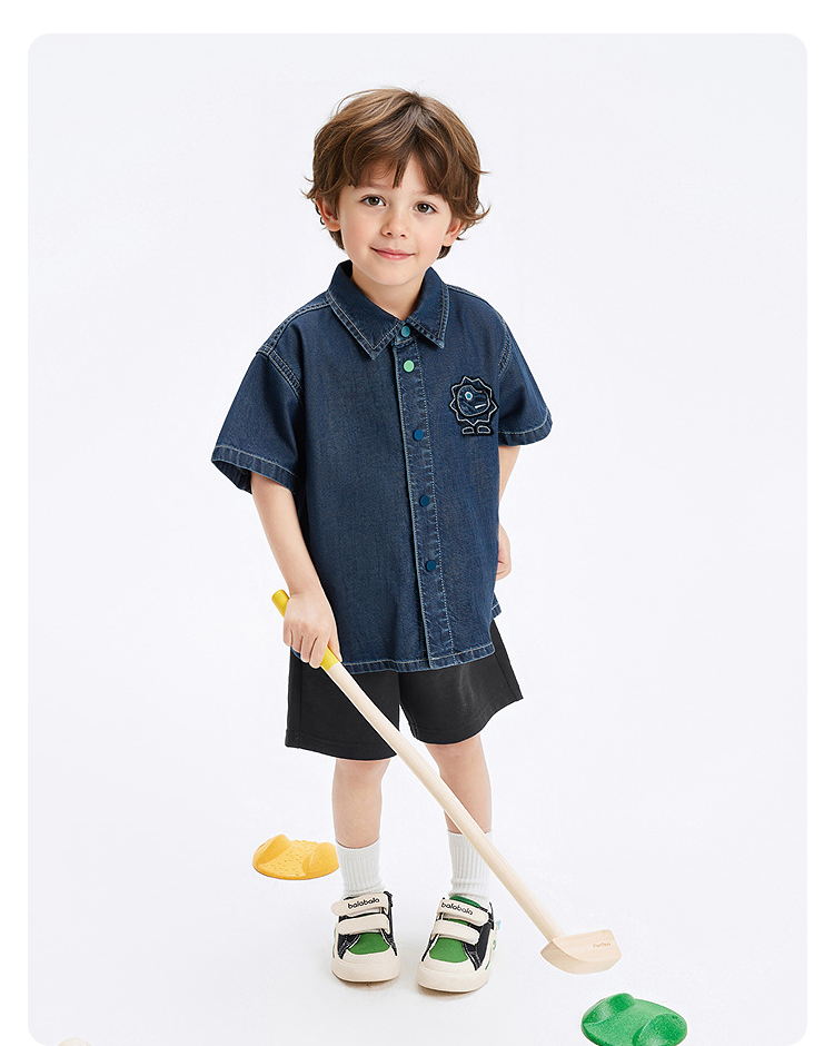 巴拉巴拉童装儿童牛仔衬衫男童上衣凉感2025夏季新款
