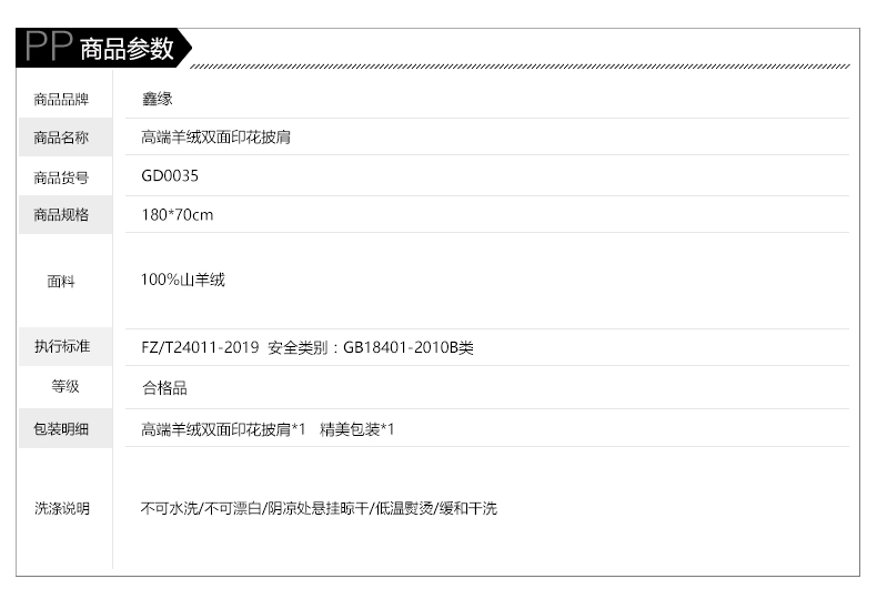 鑫缘 高端羊绒双面印花披肩 GD0035
