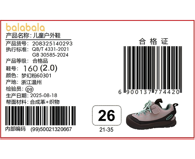巴拉巴拉童鞋儿童户外鞋男童女童运动鞋透气舒适2025新款春秋鞋子