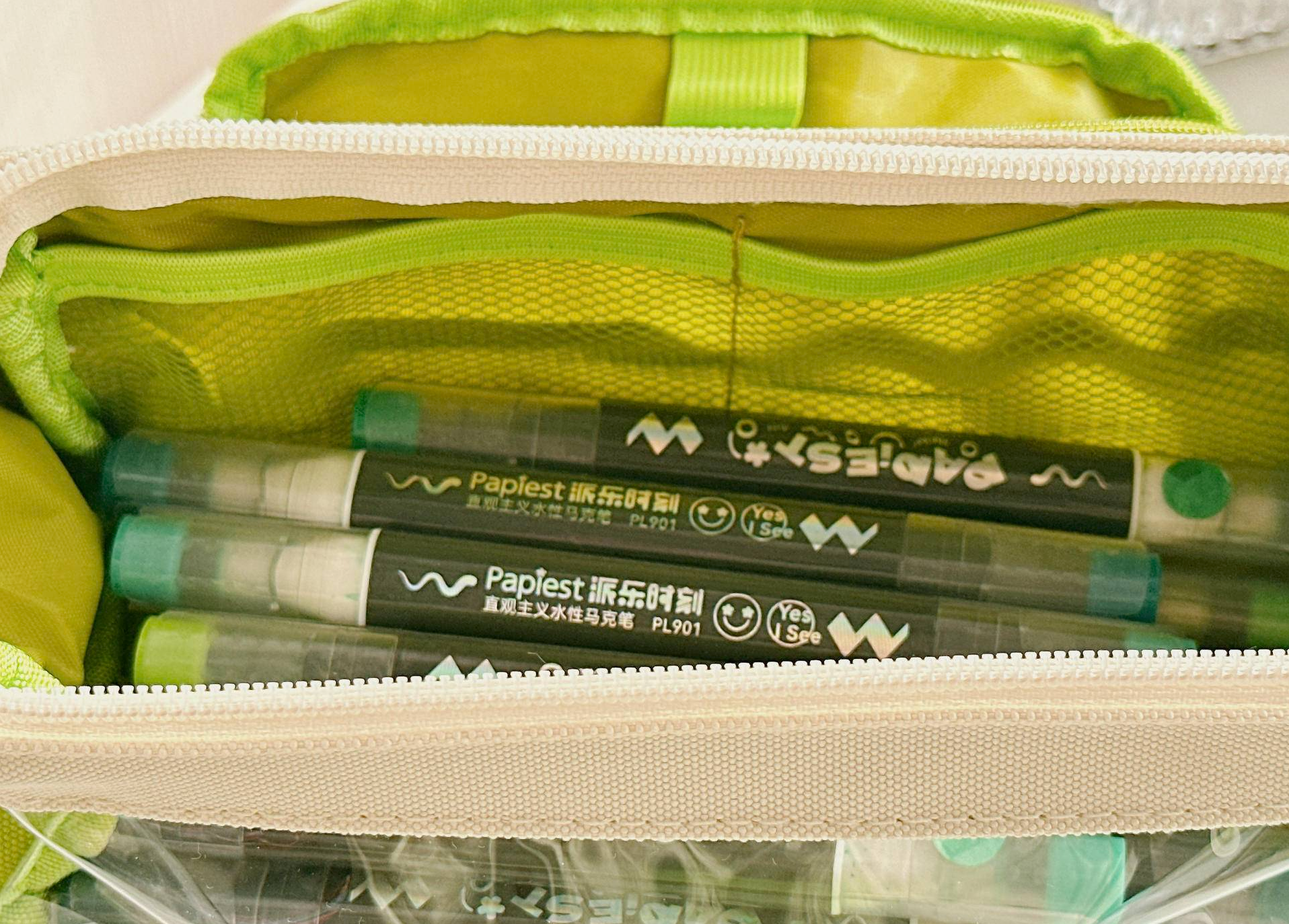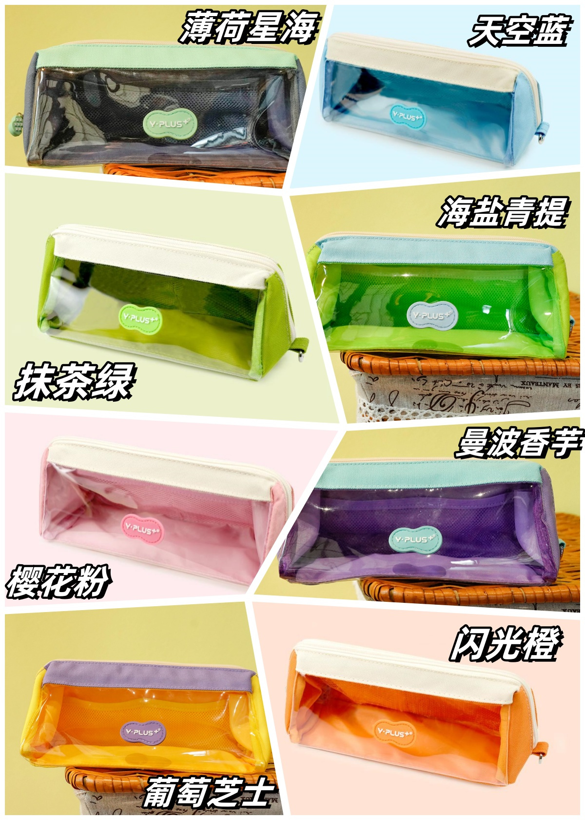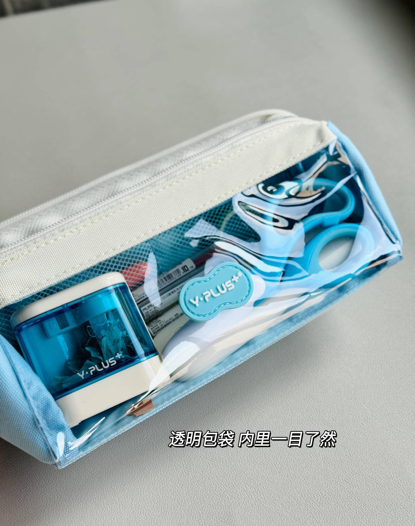 质量超好,晶莹的可视透明窗像果冻一样Q~ 装满就是厚实的吐司质感 主打简约实用不花哨的设计,不分散注意力,孩子上课专心学习 超大空间网格分区利用,轻松收纳超多文具 硬骨架设计,结实立体不易塌 全新撞色搭配,小孩子超爱