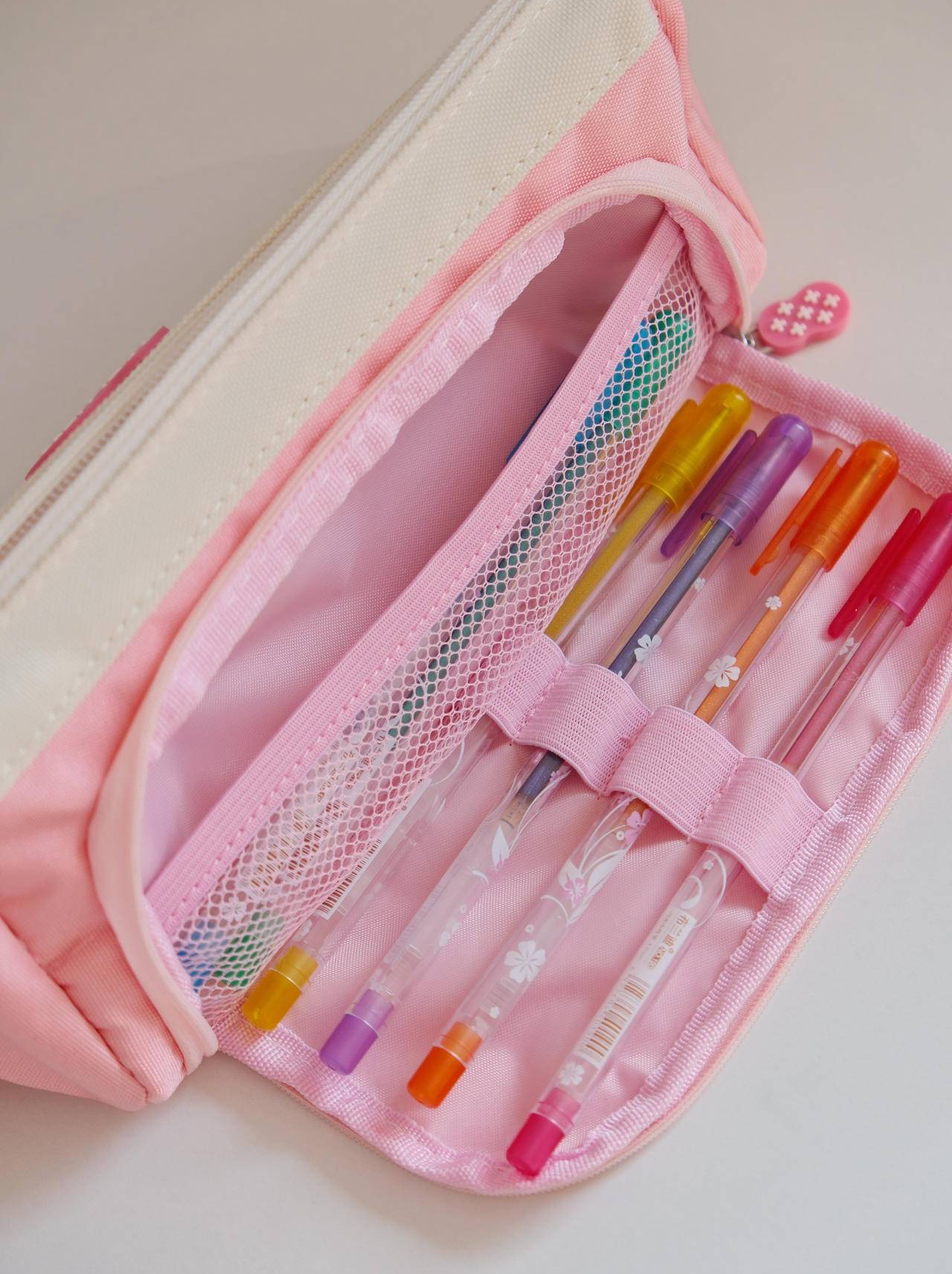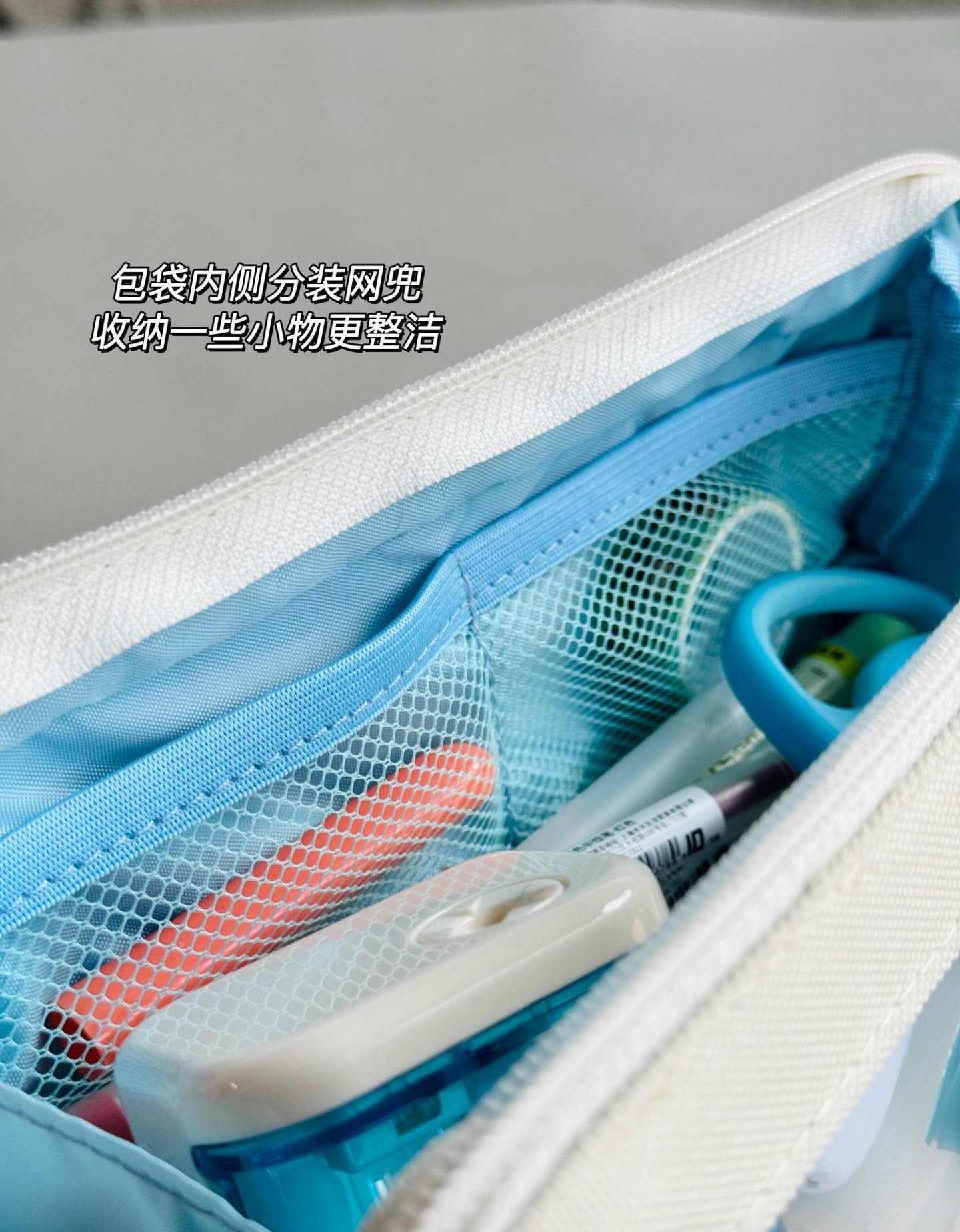 🤩 多功能口袋分区设计,各种零碎小物件都能轻松收纳, 多巴胺拼接色高颜值超级实用! 涤纶加厚防水面料,耐磨又抗造非常好打理,超多隔层不杂乱,很难不爱诶~ 让人一眼就爱上的颜色搭配,干干净净真的超美!! 姐妹们还没给宝贝安排开学笔袋的千万别错过~冲冲冲·