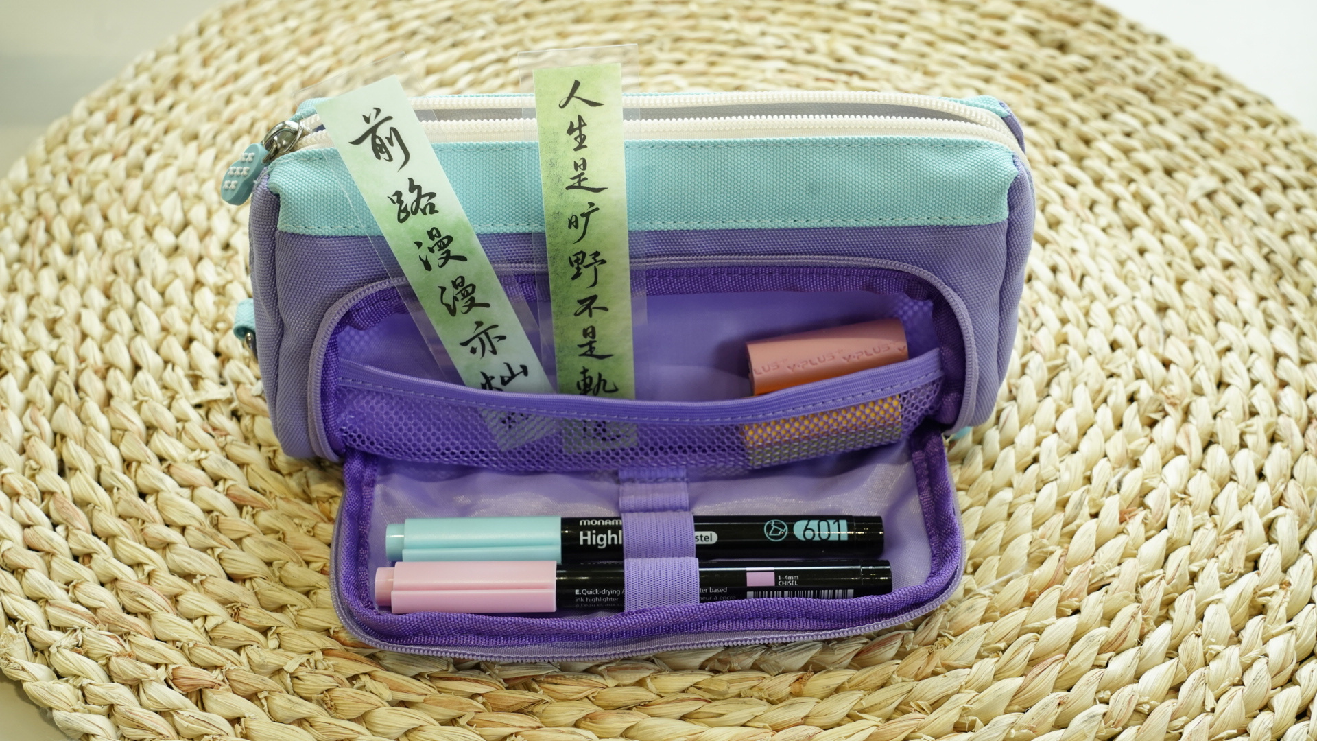 色彩盛宴,带去上学老师都夸好用又漂亮! 生活与学习中都不可忽略的收纳小技巧~ 清透晶莹的可视窗口,拿取文具一目了然 弄脏了也容易清洁的帆布材质,防水耐脏非常好打理 轻便抗造 小朋友上课专心学习不被噪音打扰