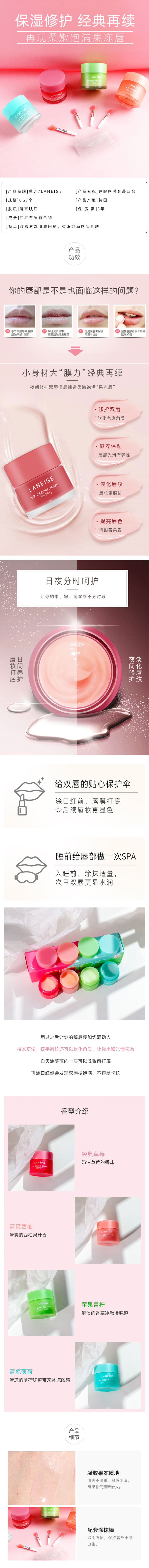 LANEIGE/兰芝 夜间保湿修护唇膜迷你套装 四合一