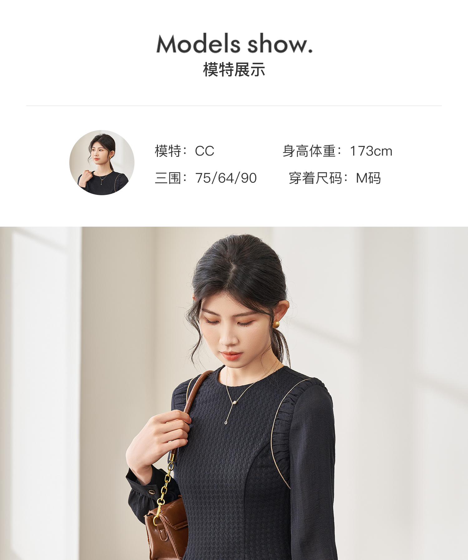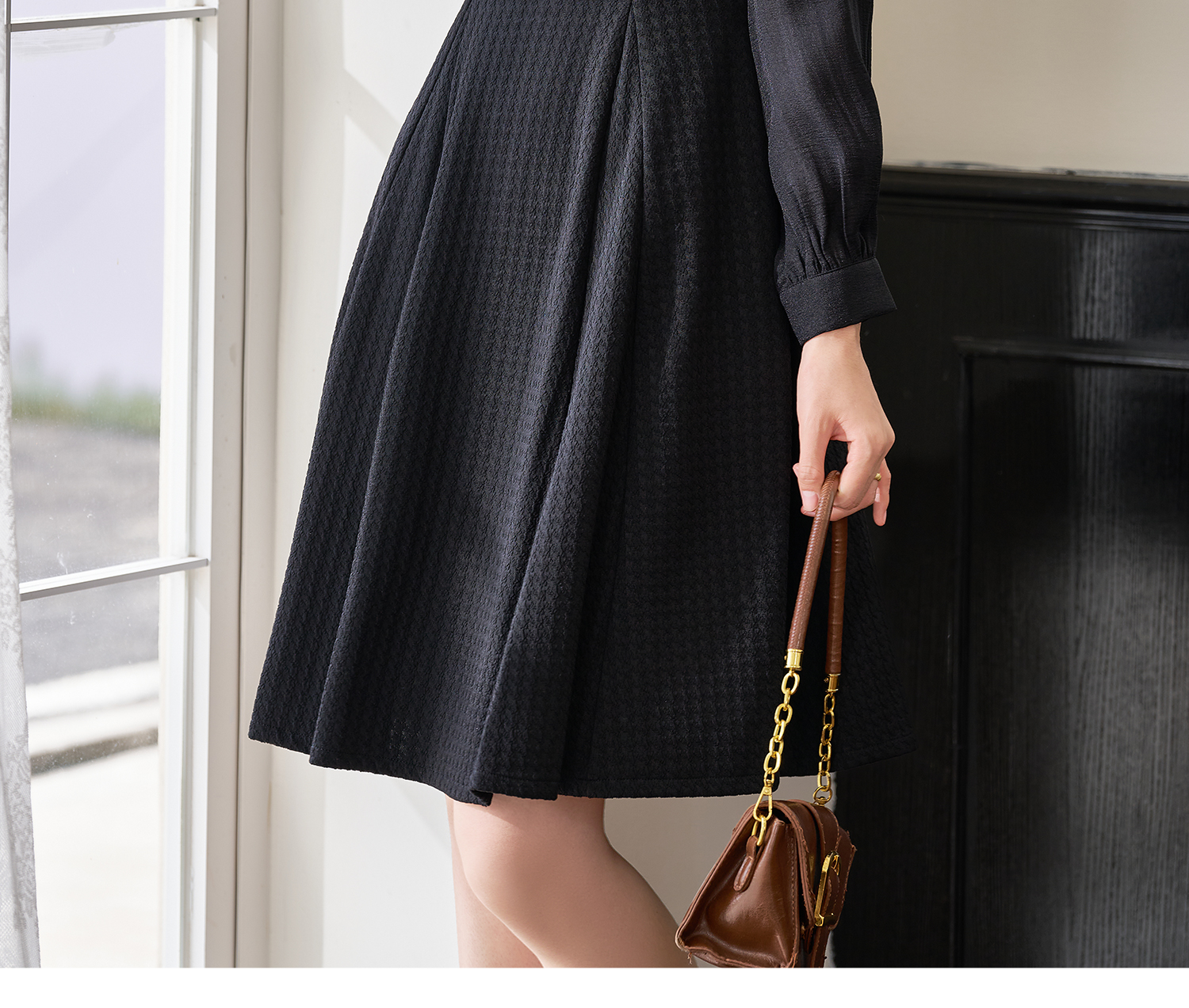 剩S/M/XL 米思阳2026春季新款气质简约百搭黑色连衣裙高腰显瘦A字裙0037