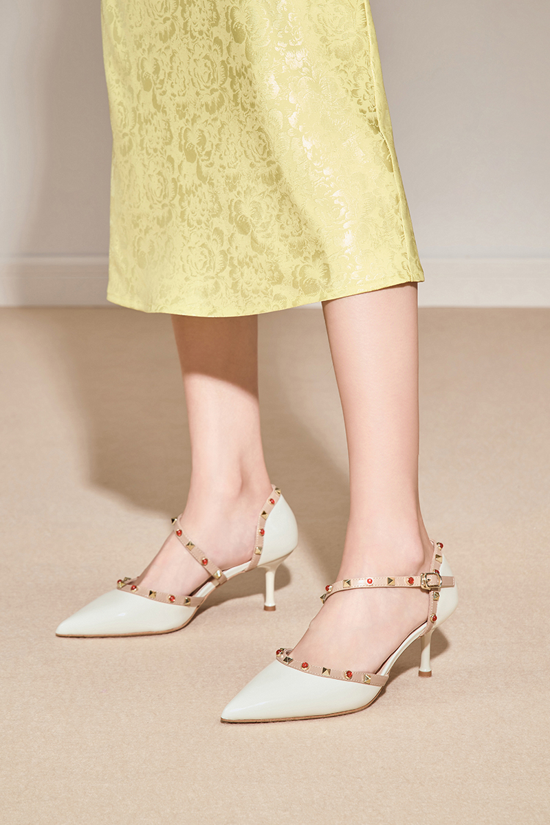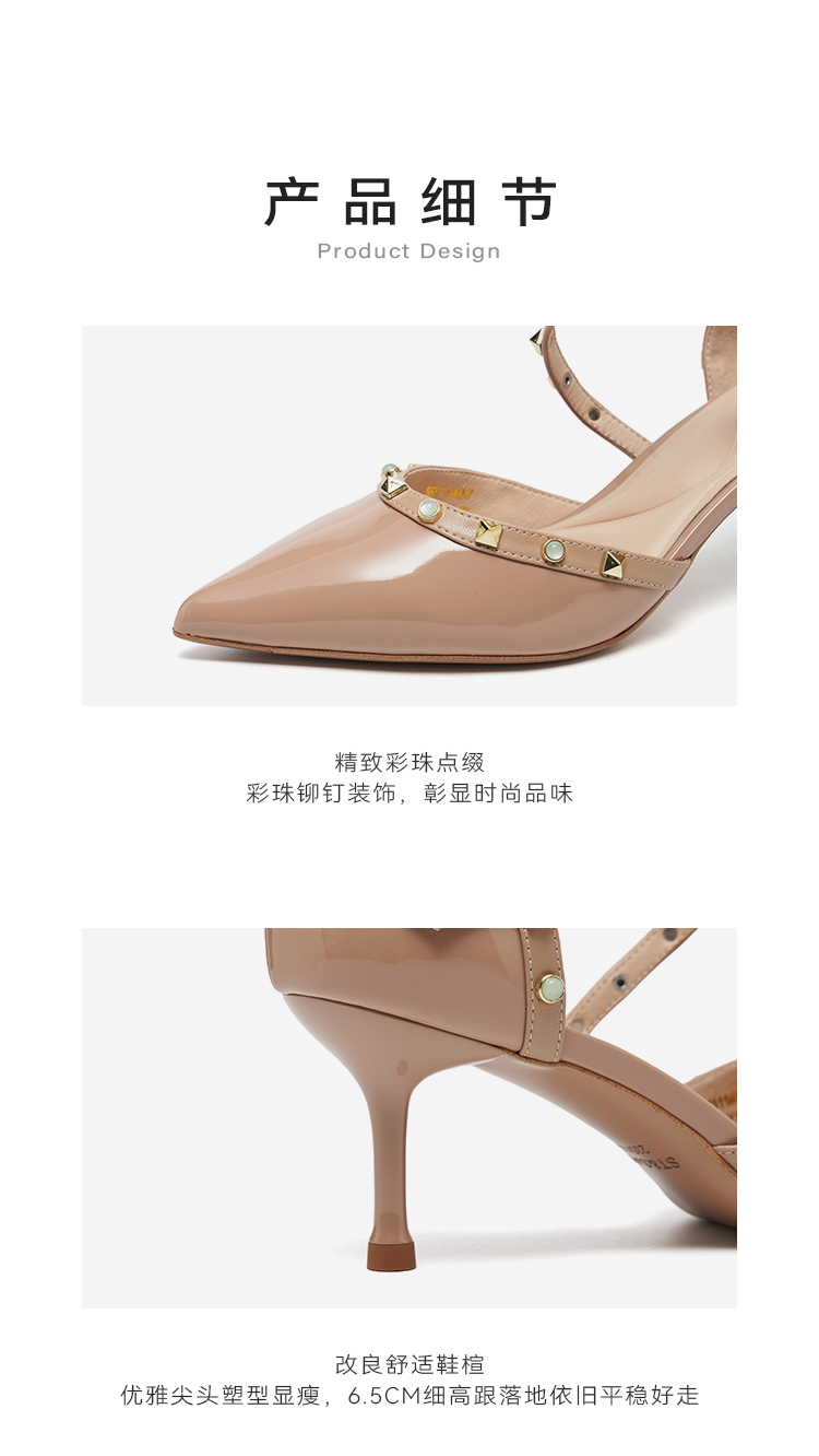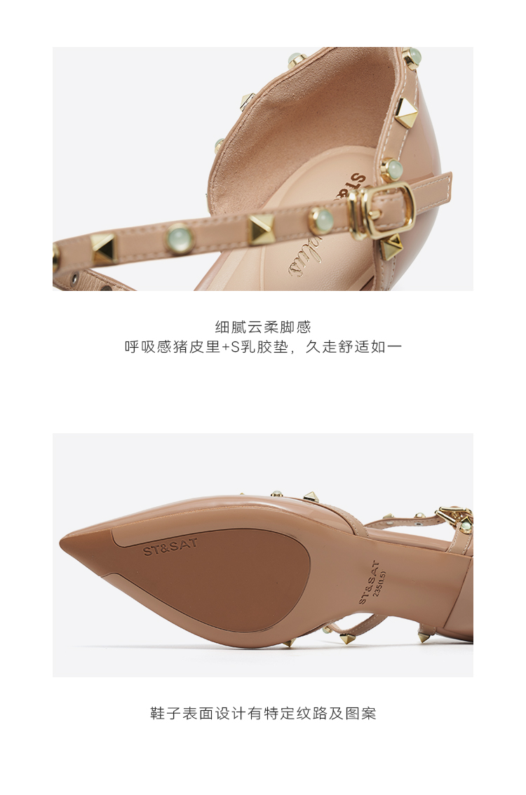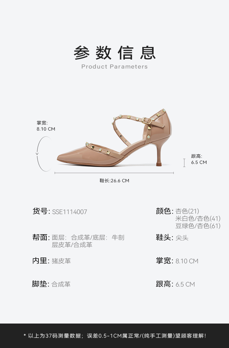 【铆钉系列】星期六26春新款优雅中空彩钉高跟鞋SSE1114007