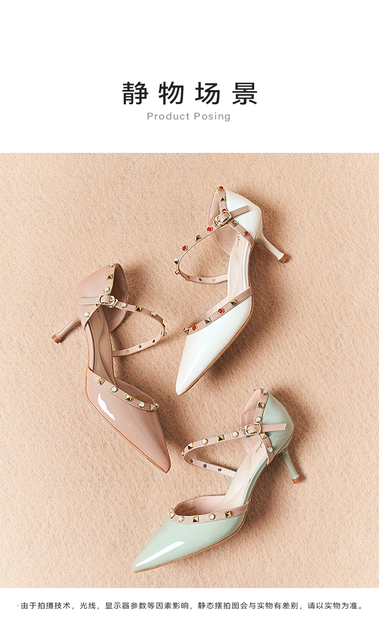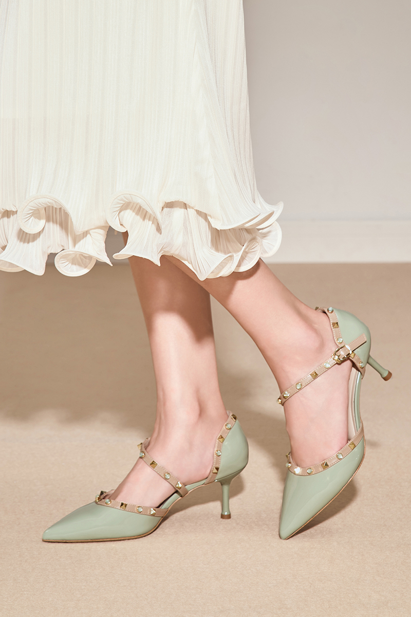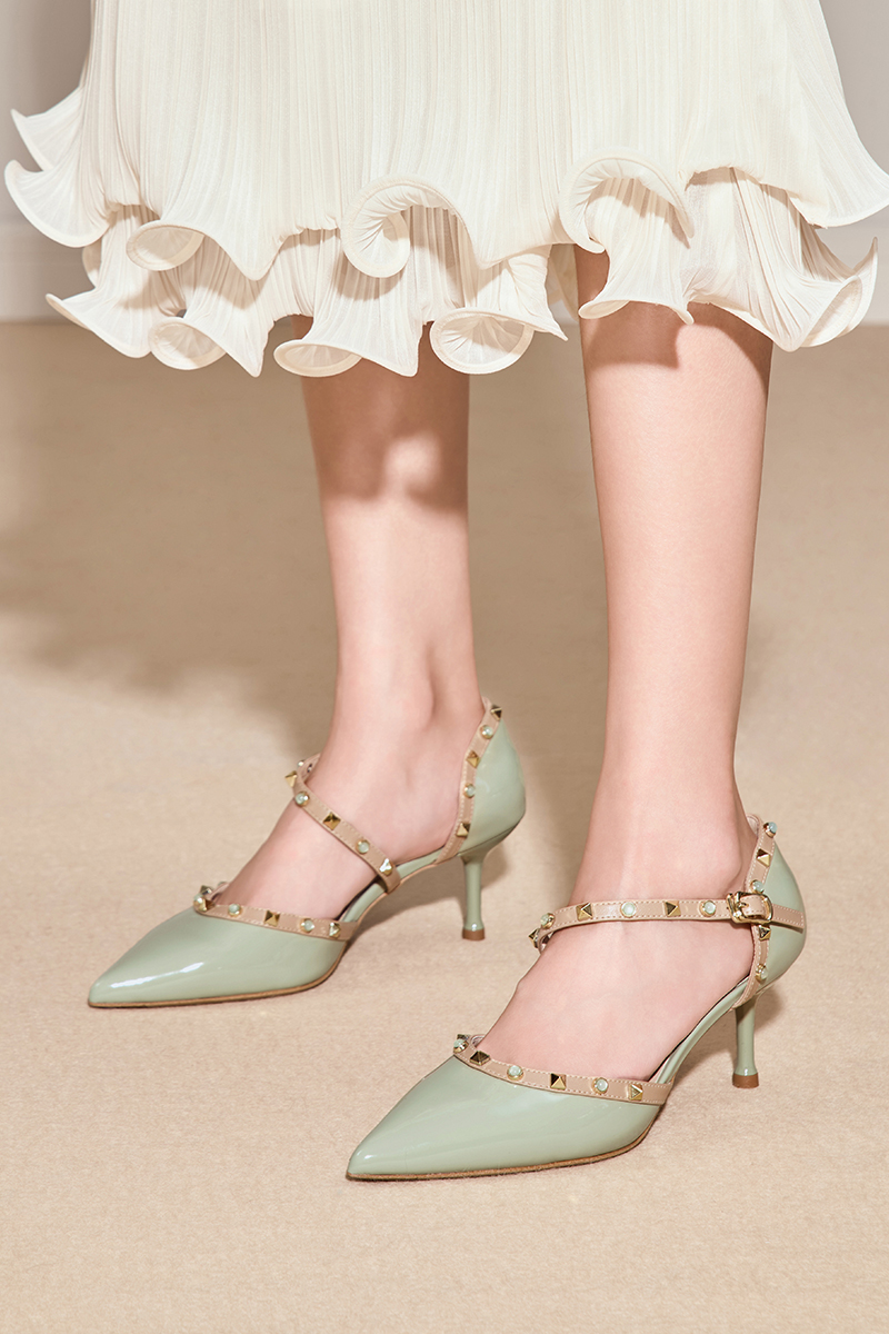 【铆钉系列】星期六26春新款优雅中空彩钉高跟鞋SSE1114007
