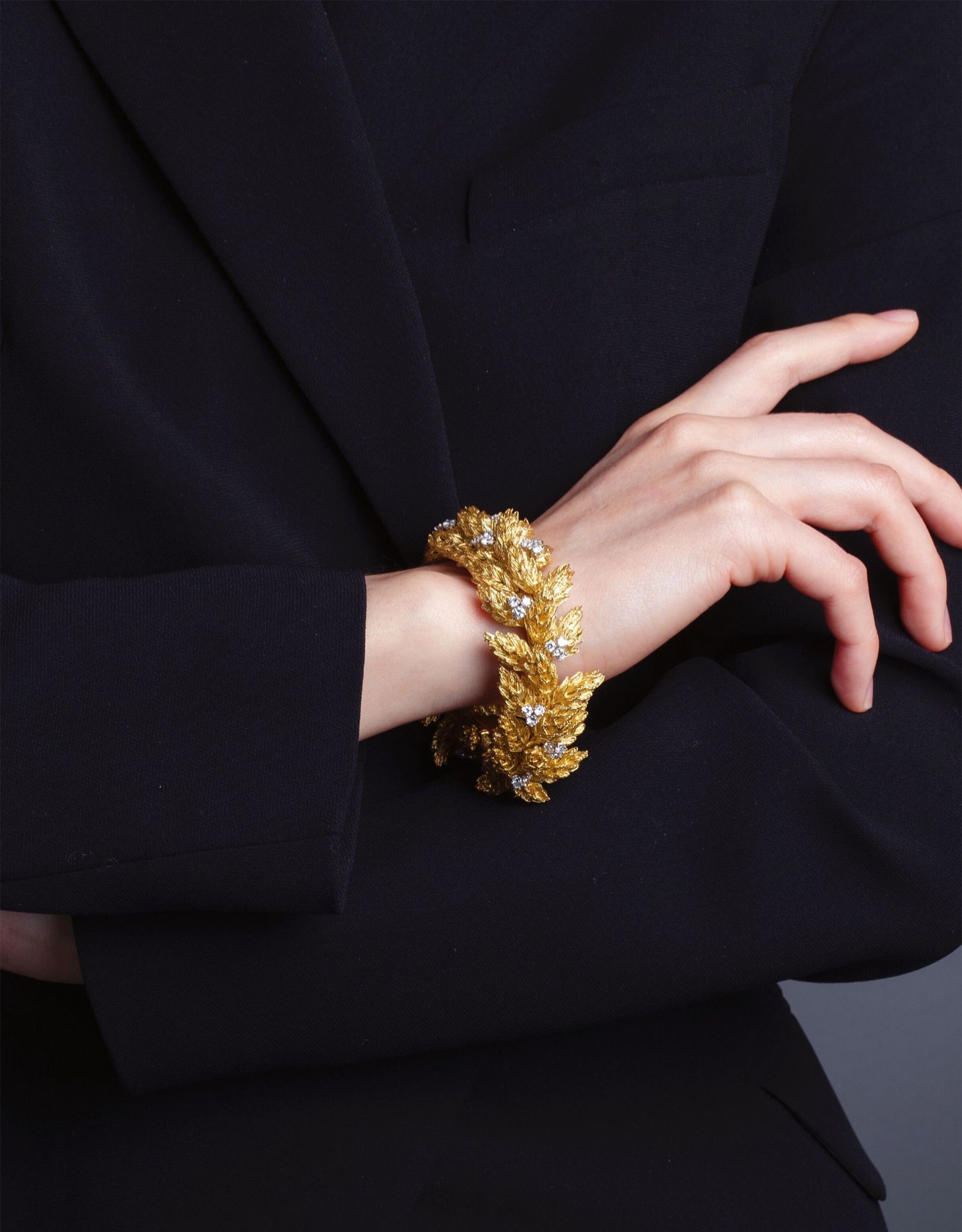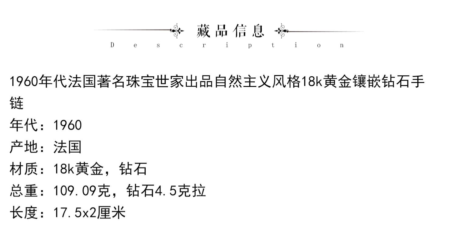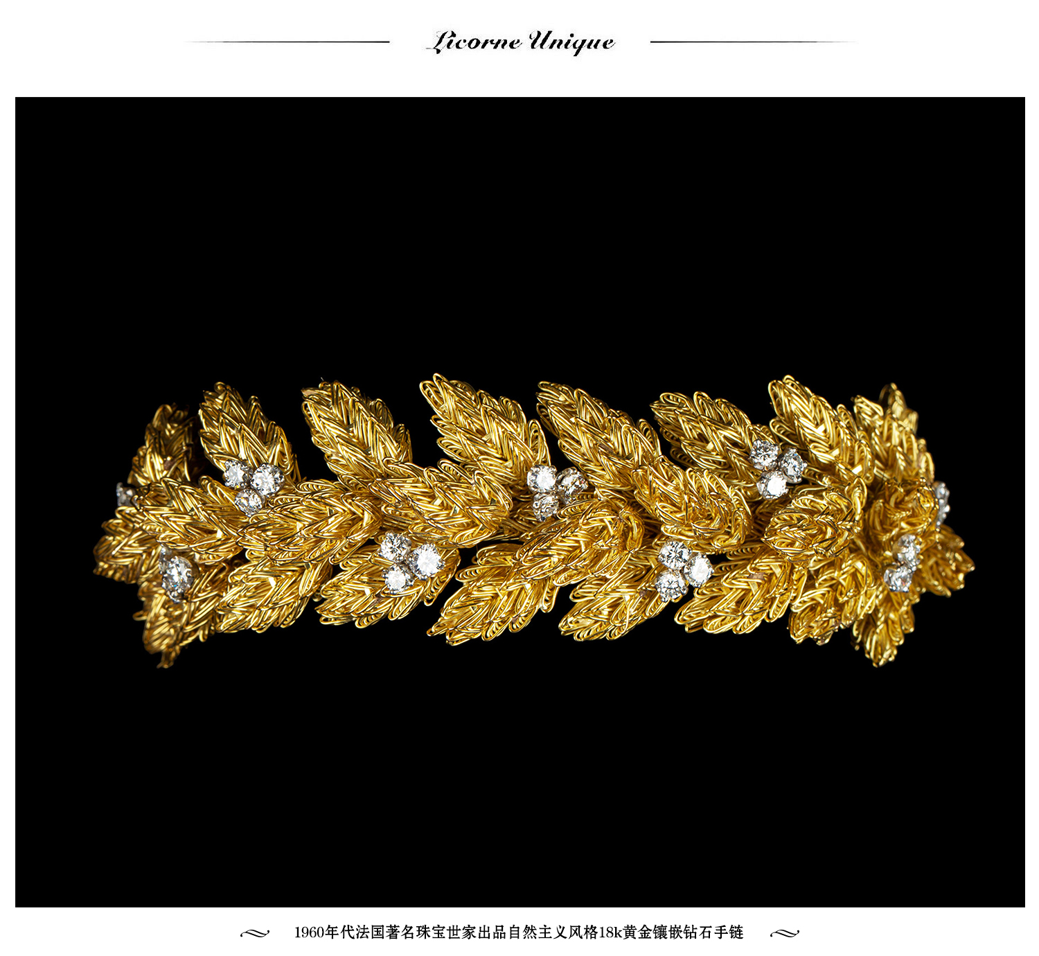 独角鹿西洋古董首饰著名珠宝世家自然主义18k黄金镶钻石手链手镯