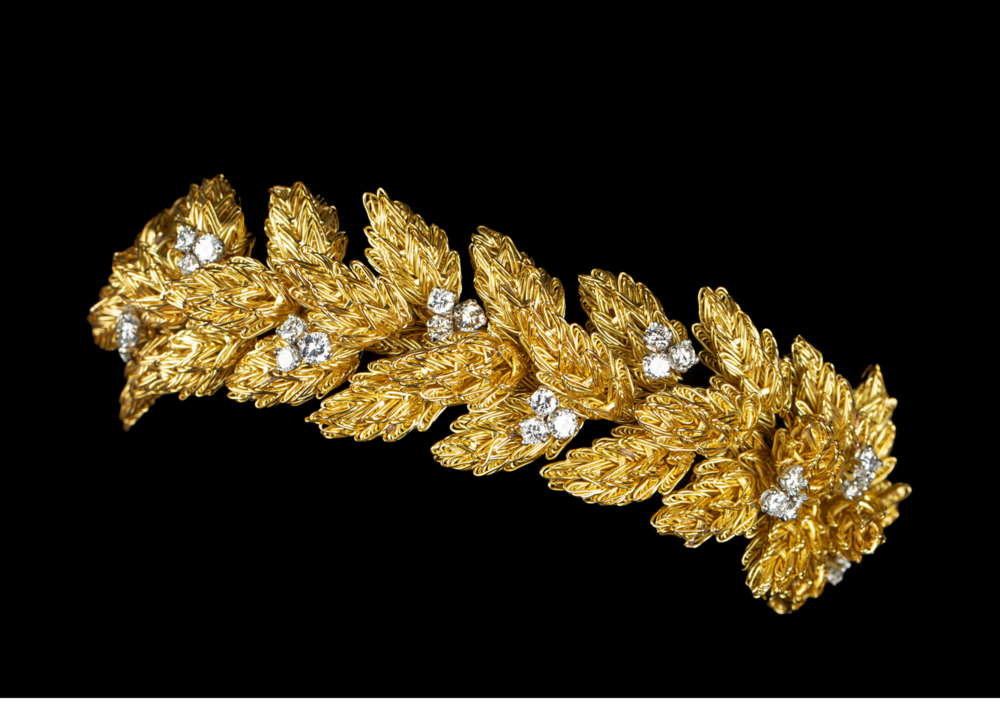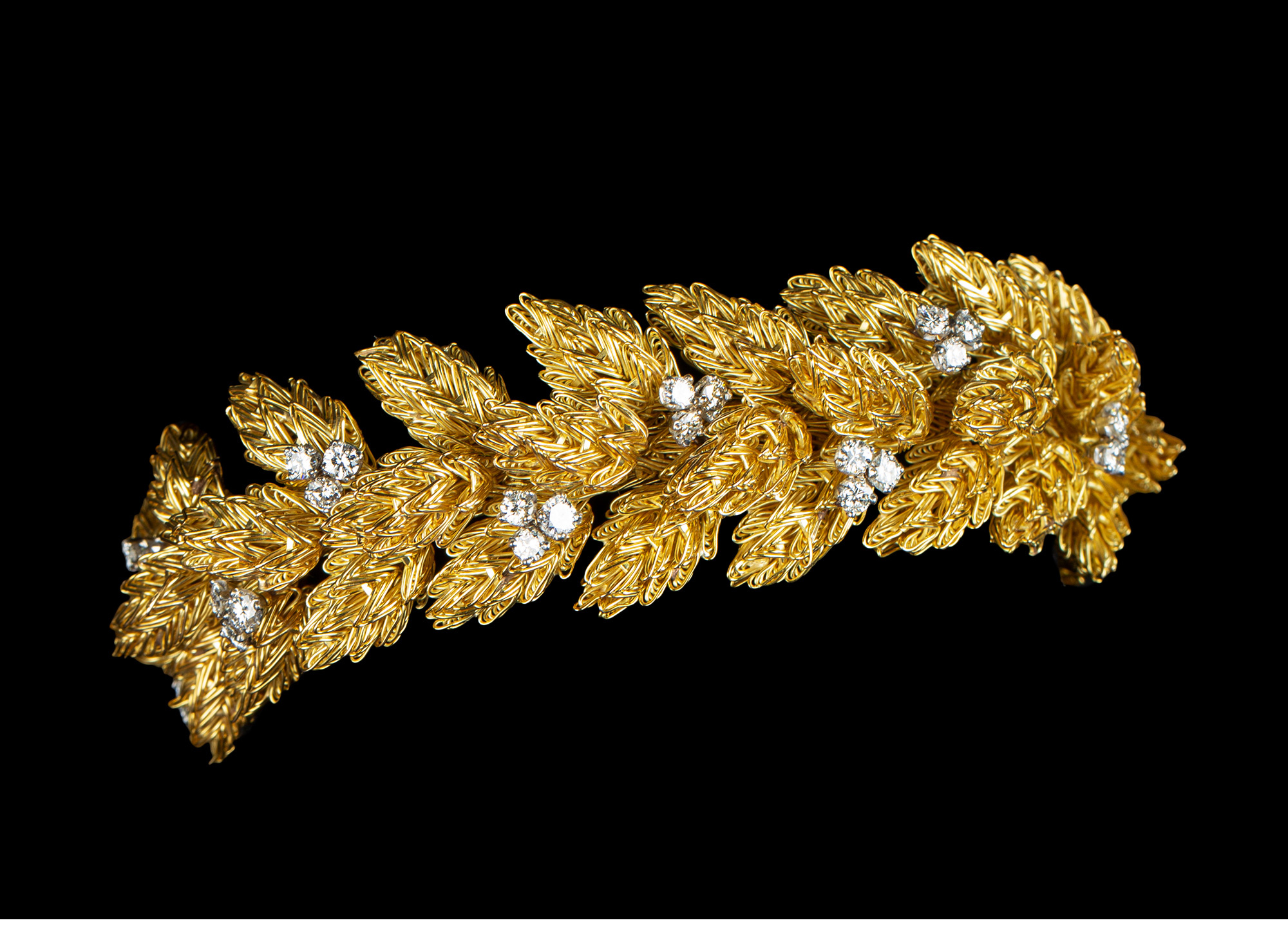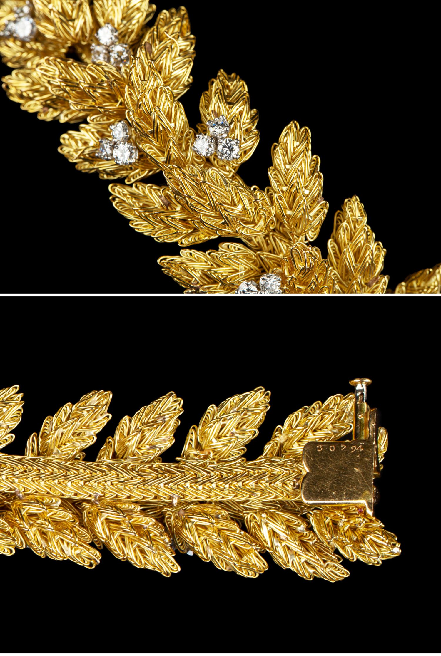 独角鹿西洋古董首饰著名珠宝世家自然主义18k黄金镶钻石手链手镯