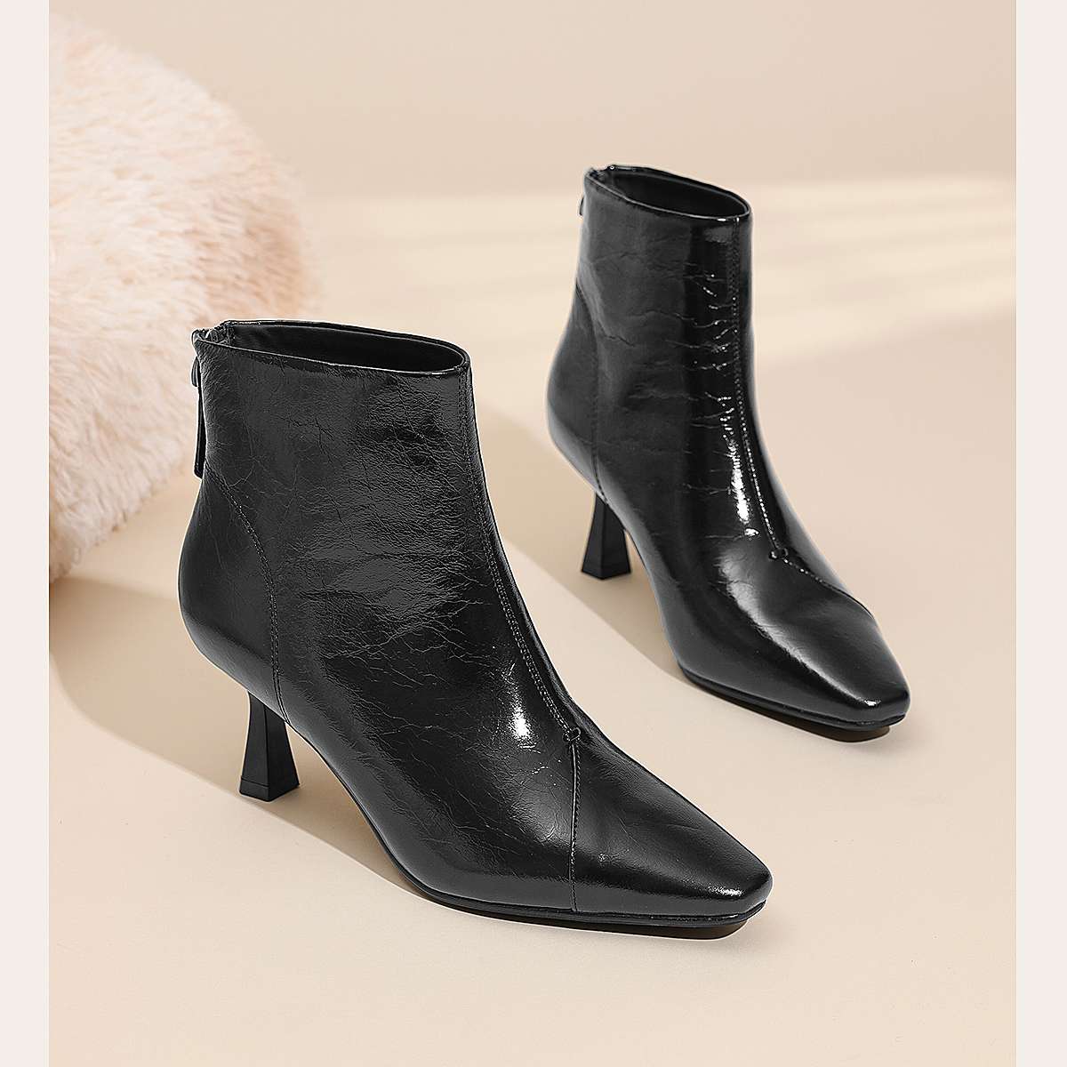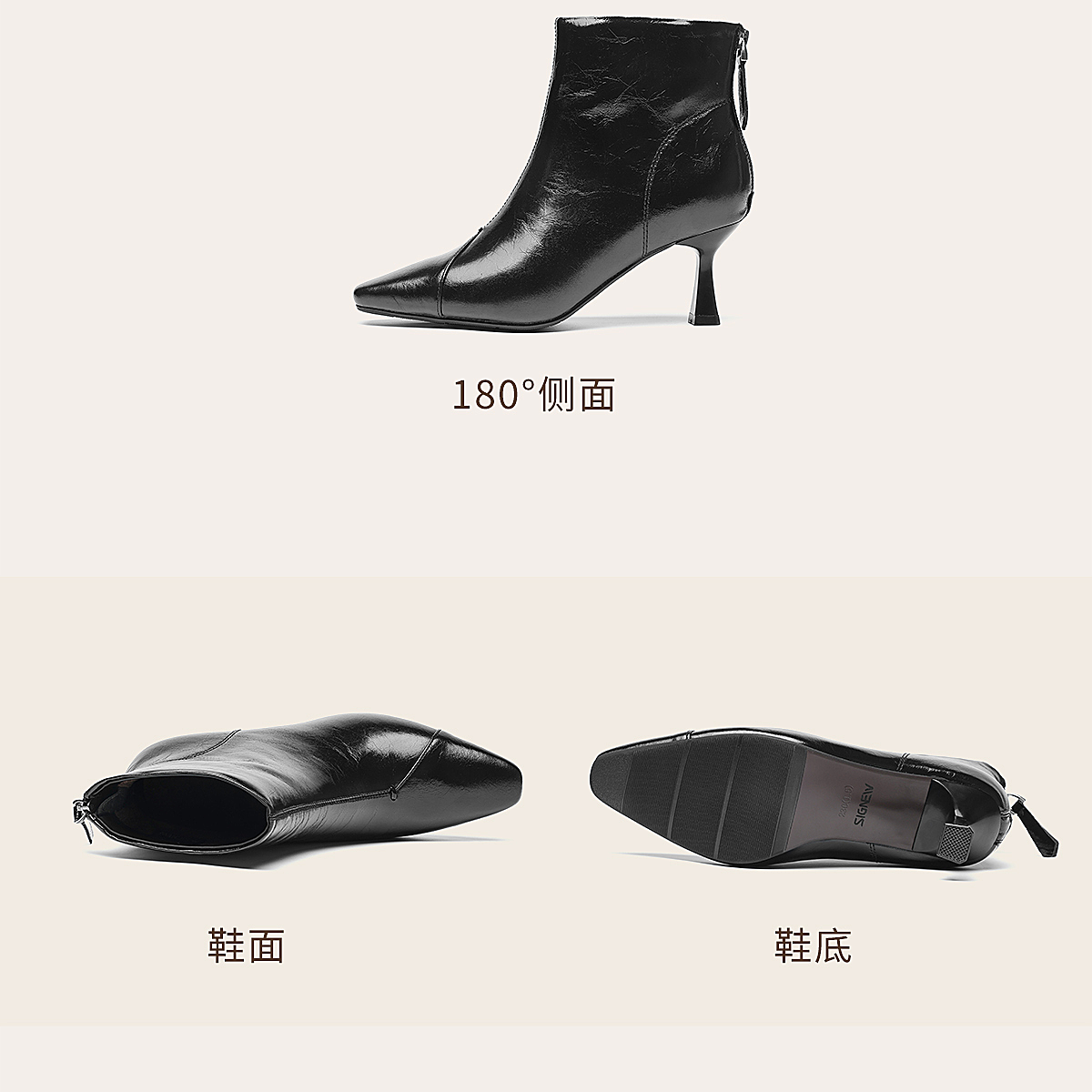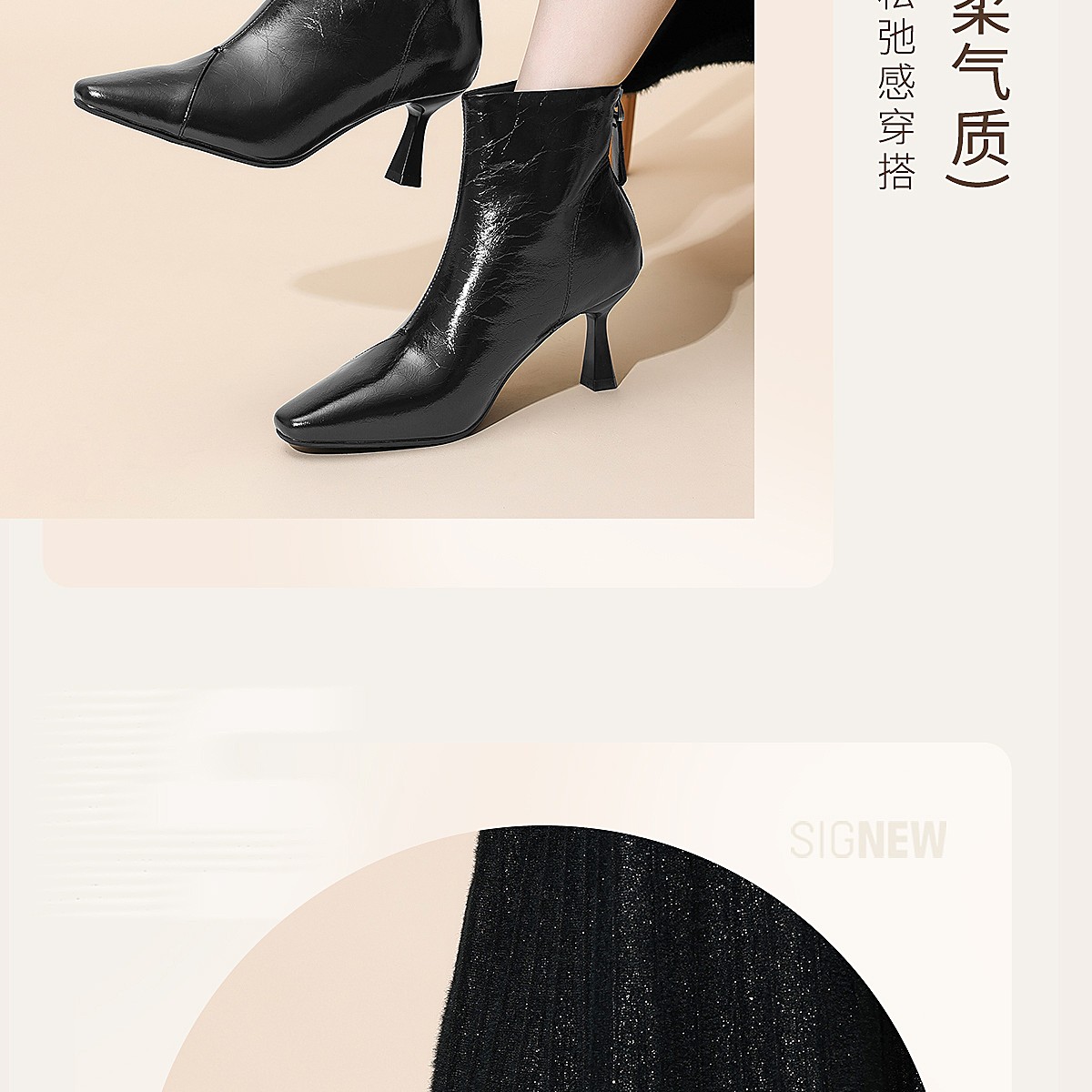 信诺妈妈鞋女真皮细跟时装靴子法式气质短靴加绒棉鞋2025冬季新款X5M097-268