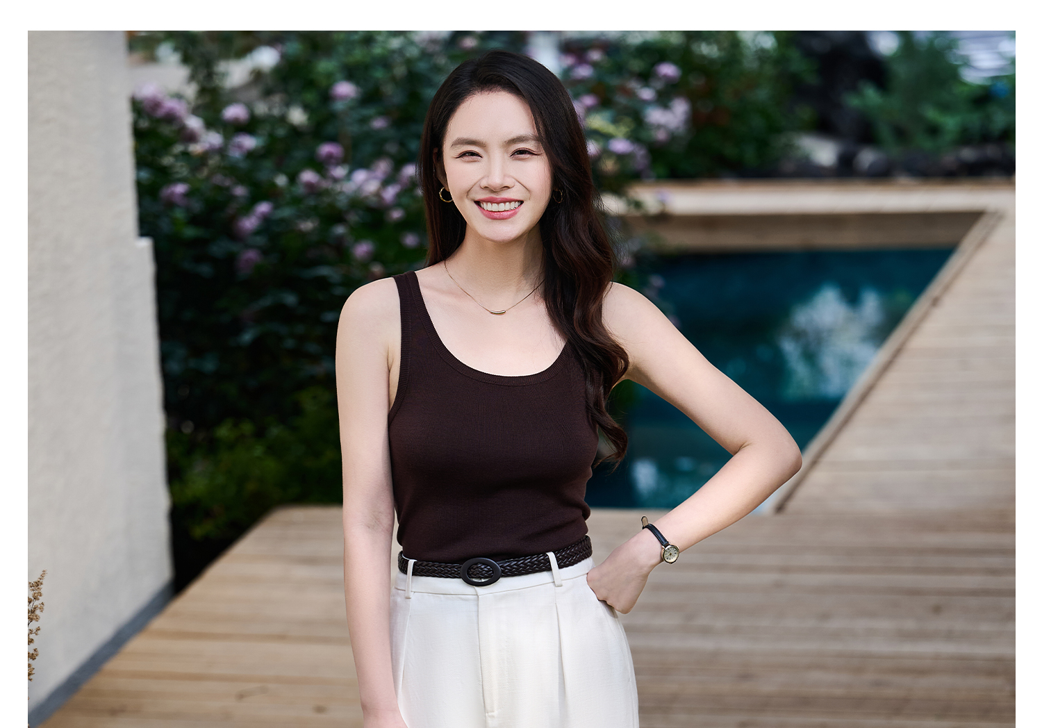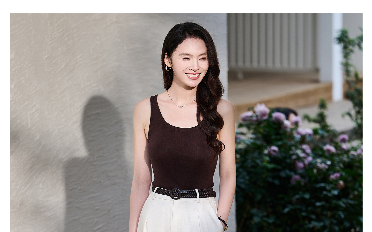 100%天丝背心 夏天不担心闷汗啦!米思阳2026春夏新款法式宽肩款背心内搭弹力上衣女6166