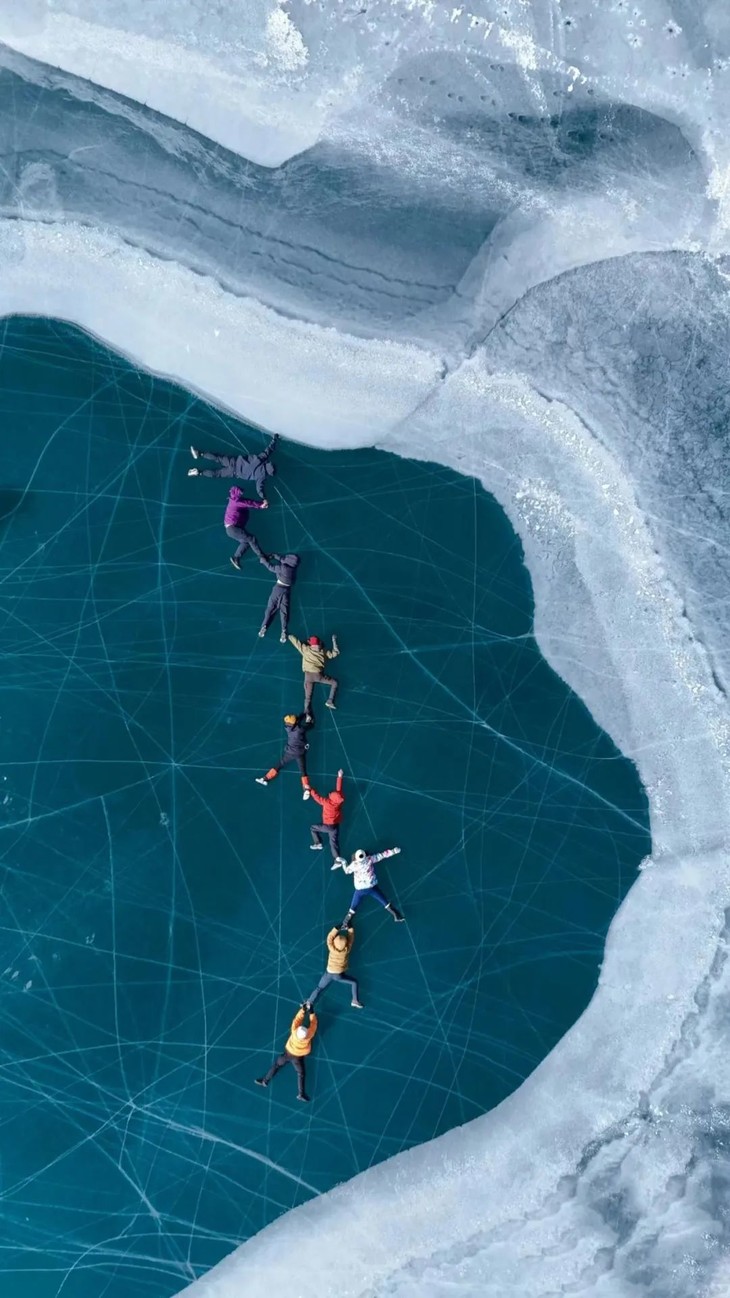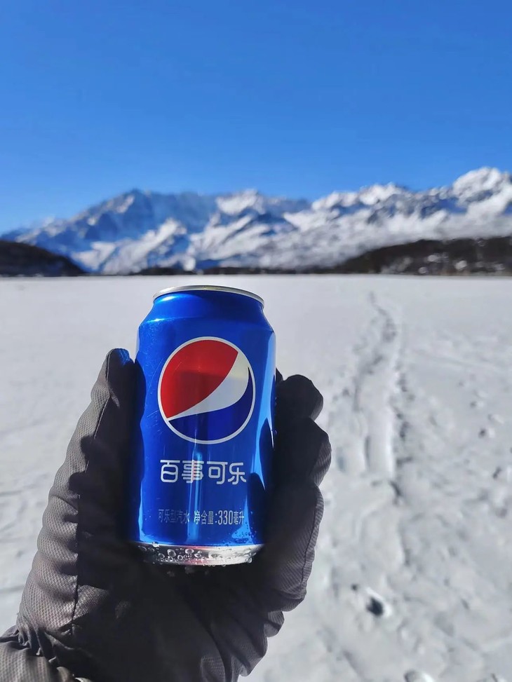 而冬日野马海子水波粼粼的湖面已结蓝冰,在行者悄然路过不知情的时候,它在阳光照射下静谧渡过了冬季,越靠近雪山那头,冰面越蓝。