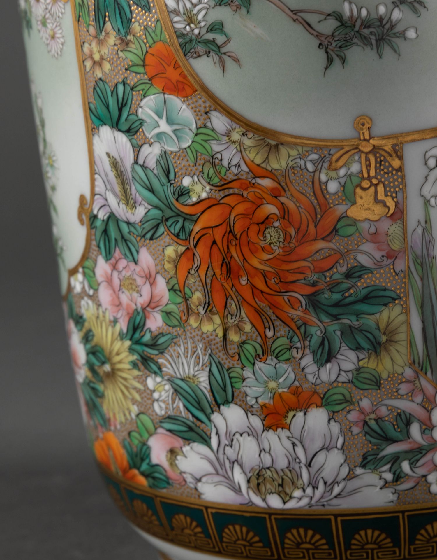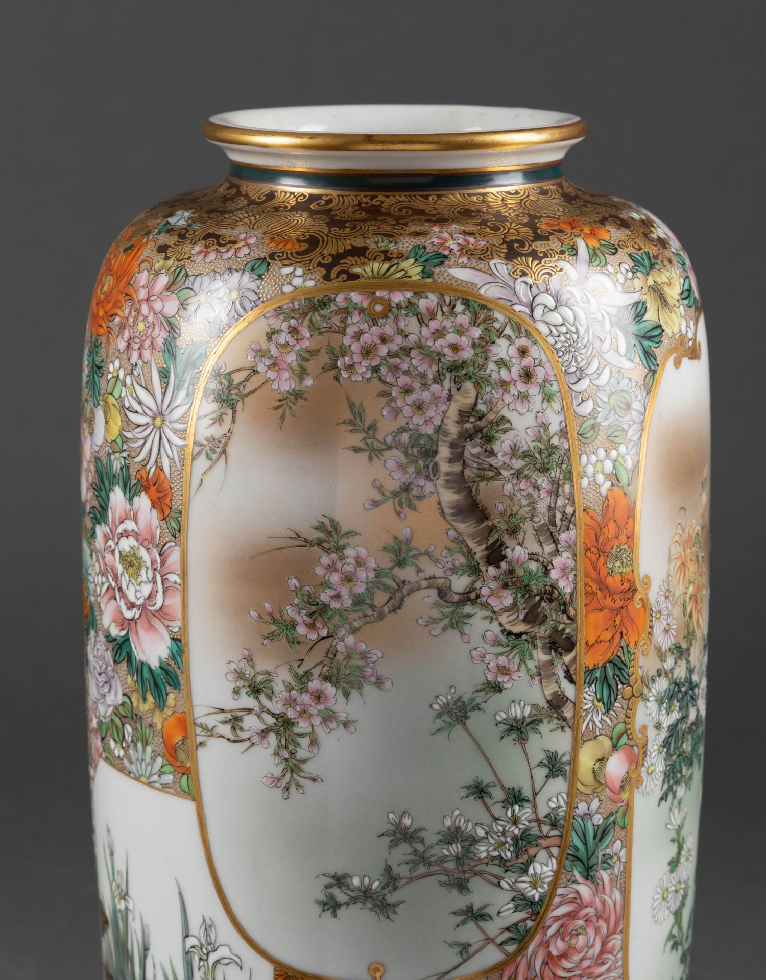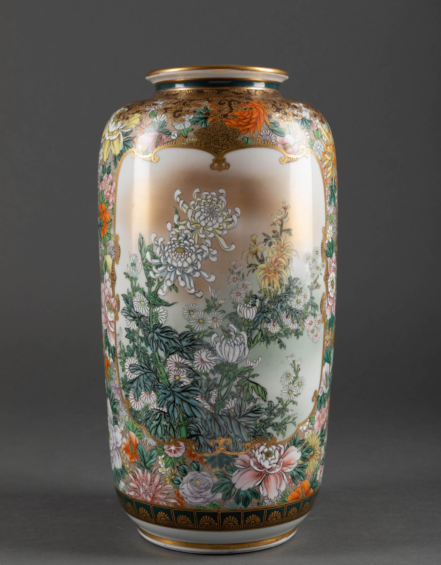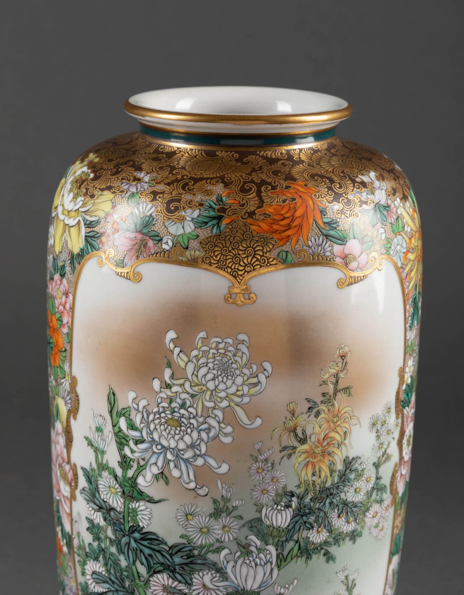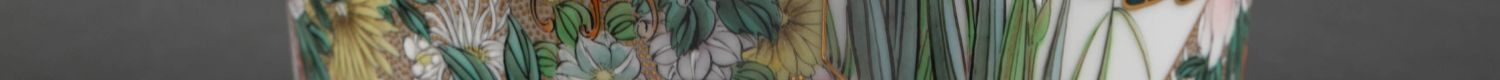 独角鹿西洋古董日本明治时期菊花主题九谷烧瓷瓶陶瓷摆件一对