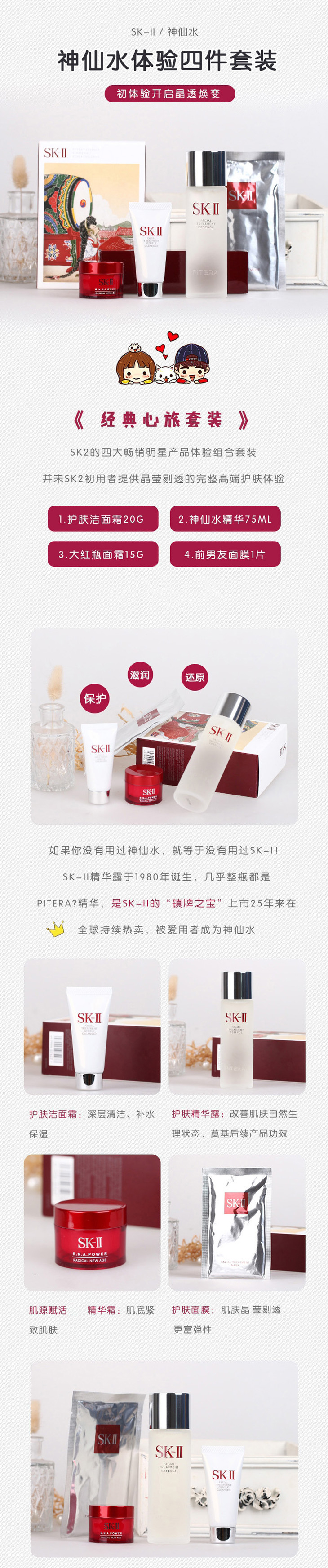 【香港直邮】日本SK-II 限量护肤四件套装(神仙水75ML+洁面霜20G+肌源修沪面霜15G+面膜1片)