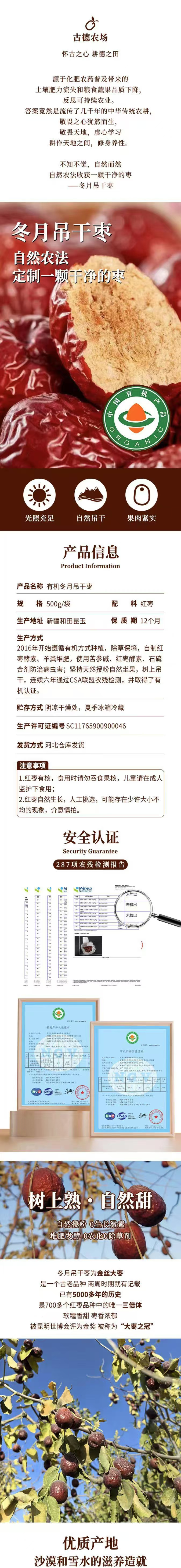 2、入药首选品种金丝大枣,软糯化渣,口感甜辣,枣香浓郁。