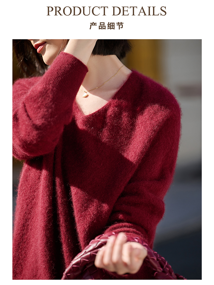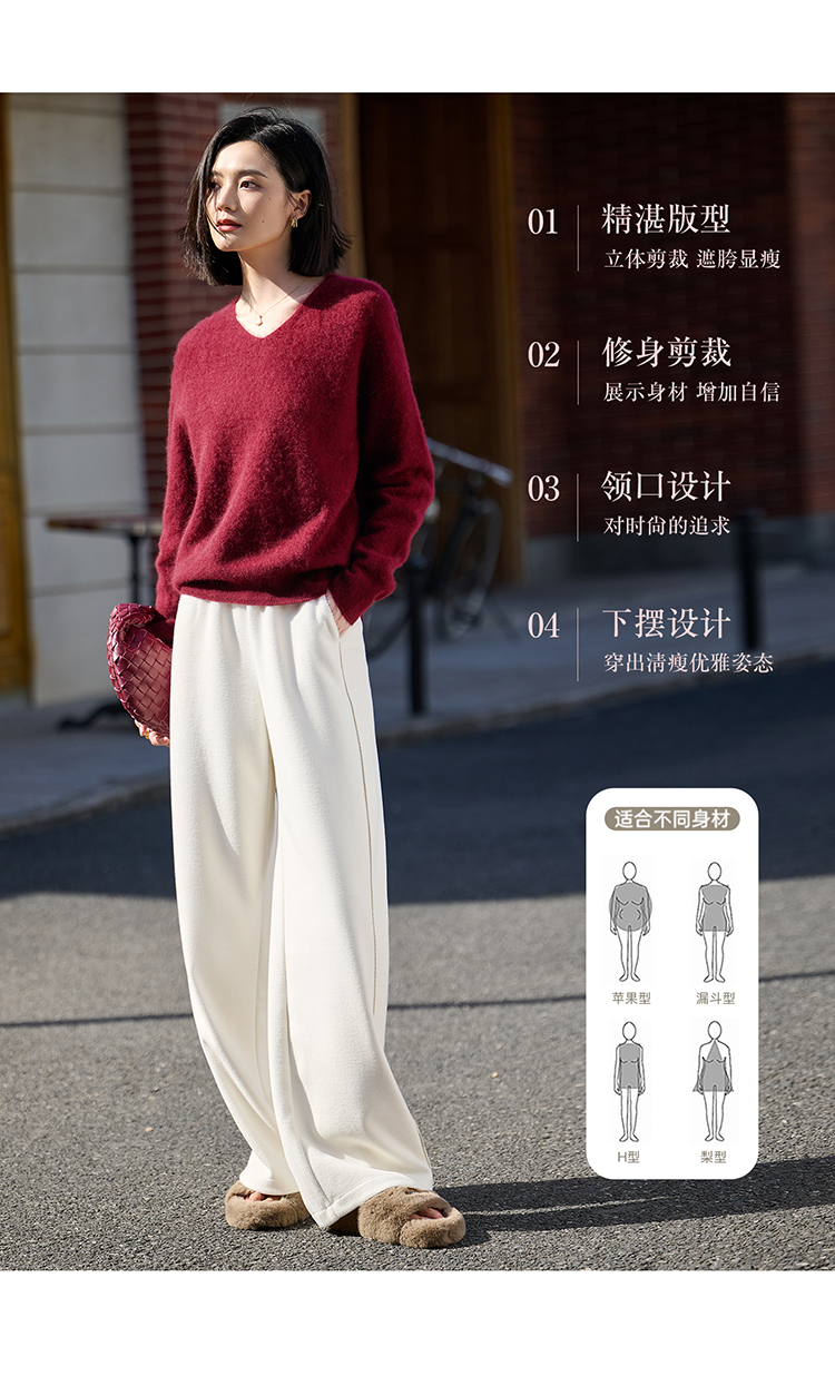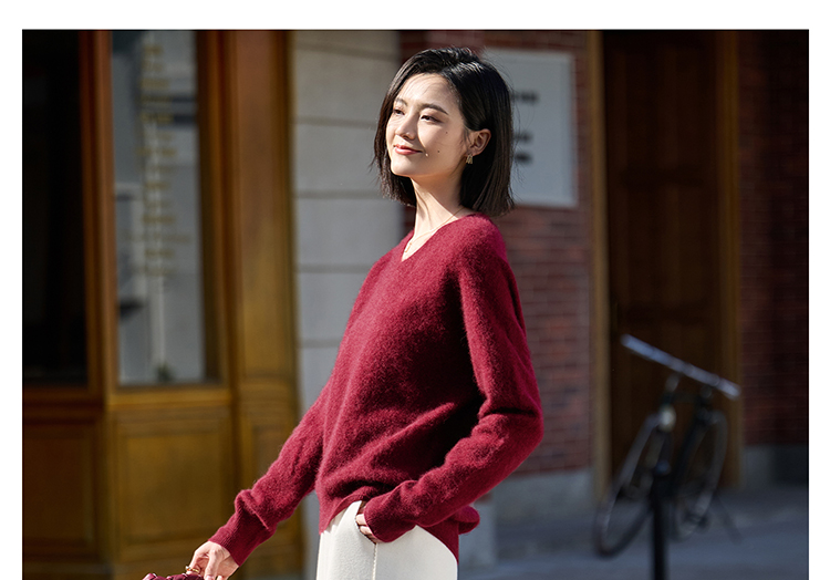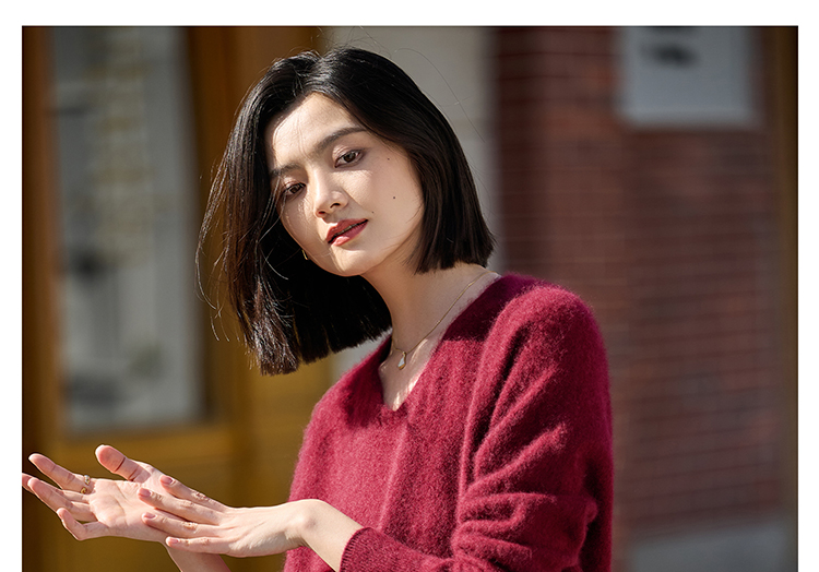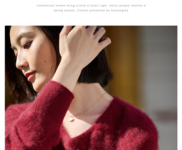 慵懒风舒适V领 100%羊毛 升级版拉毛技术 绒感翻倍丰盈 米思阳秋冬新款弹力百搭毛衣 上身轻盈无压5140