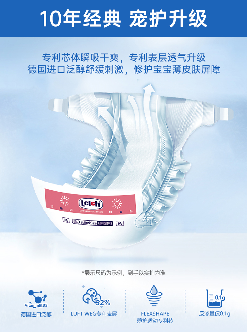 露安适(Lelch)婴儿乐享甜睡夜用纸尿裤M码