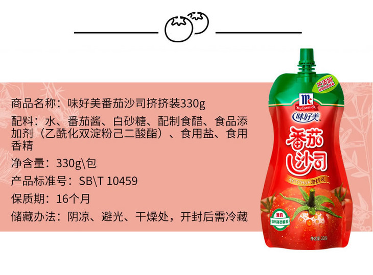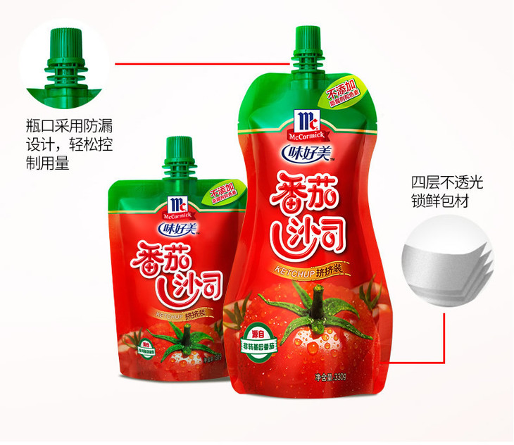 味好美番茄沙司330g 袋装 肯德基薯条 意面 手抓饼 披萨番茄酱 挤挤装