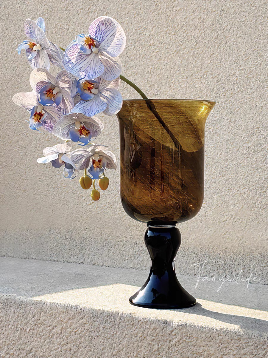 碧轩美式现代蓝色透明玻璃艺术花瓶客厅桌面仿真鲜花水培清新小花瓶