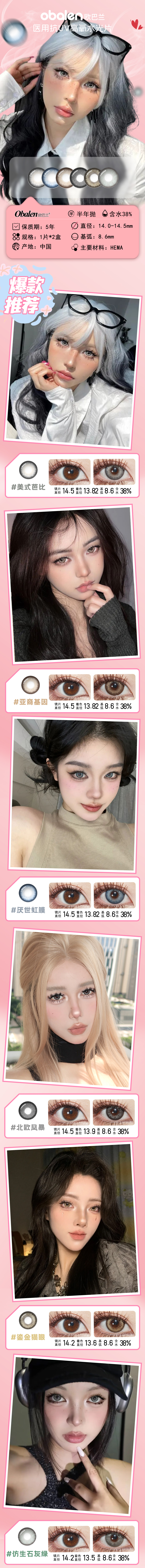 【第2副0元】半年抛美瞳【亚裔混血】欧巴兰欧美仿生虹膜显色款隐形眼镜2片装