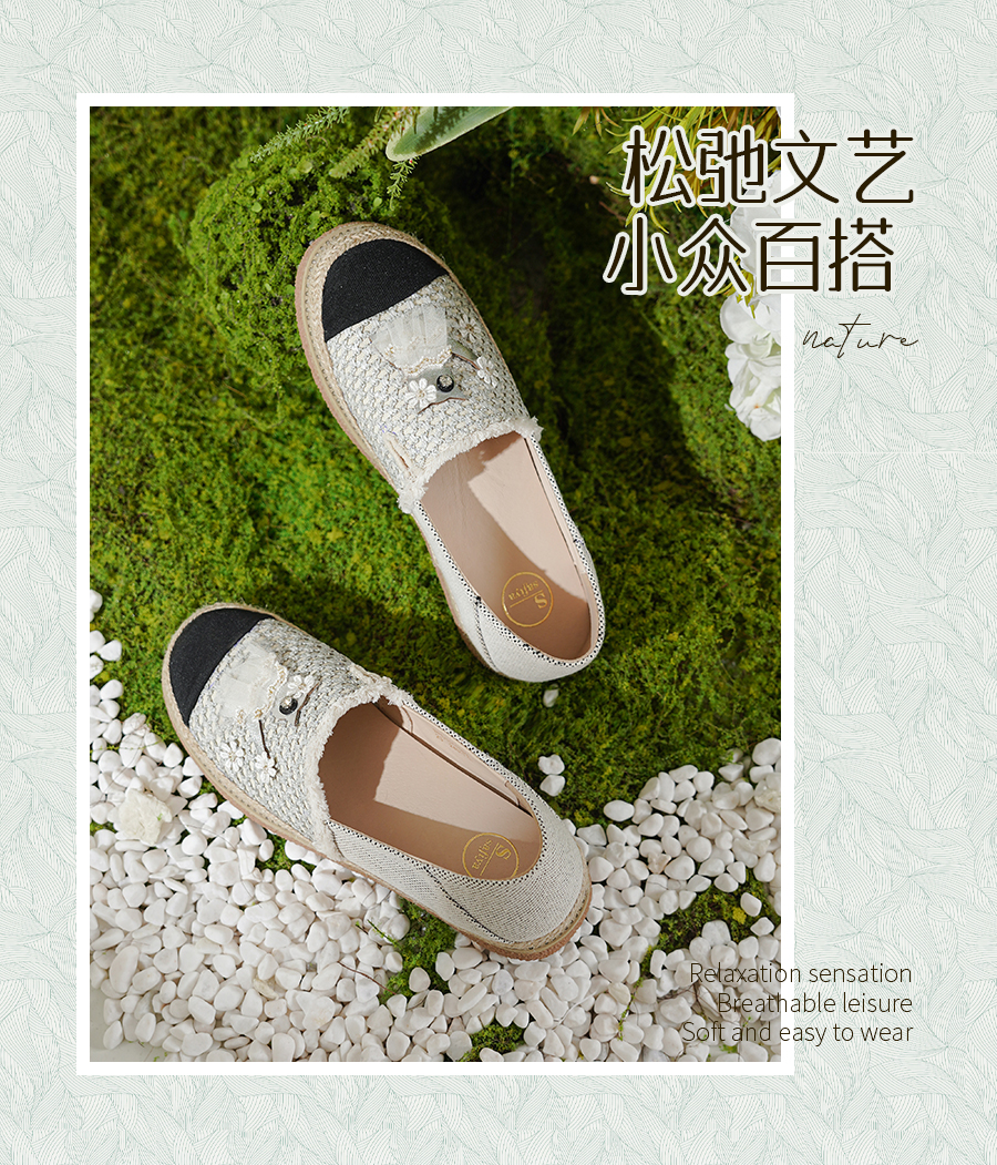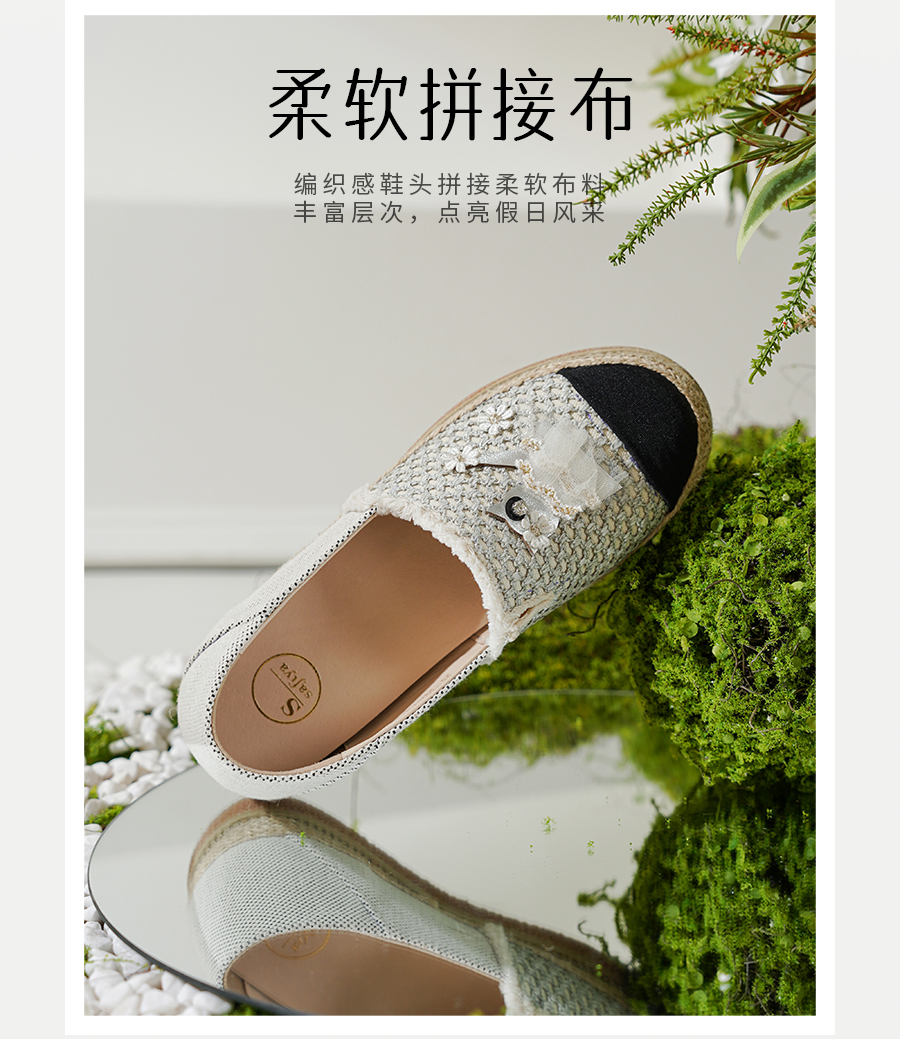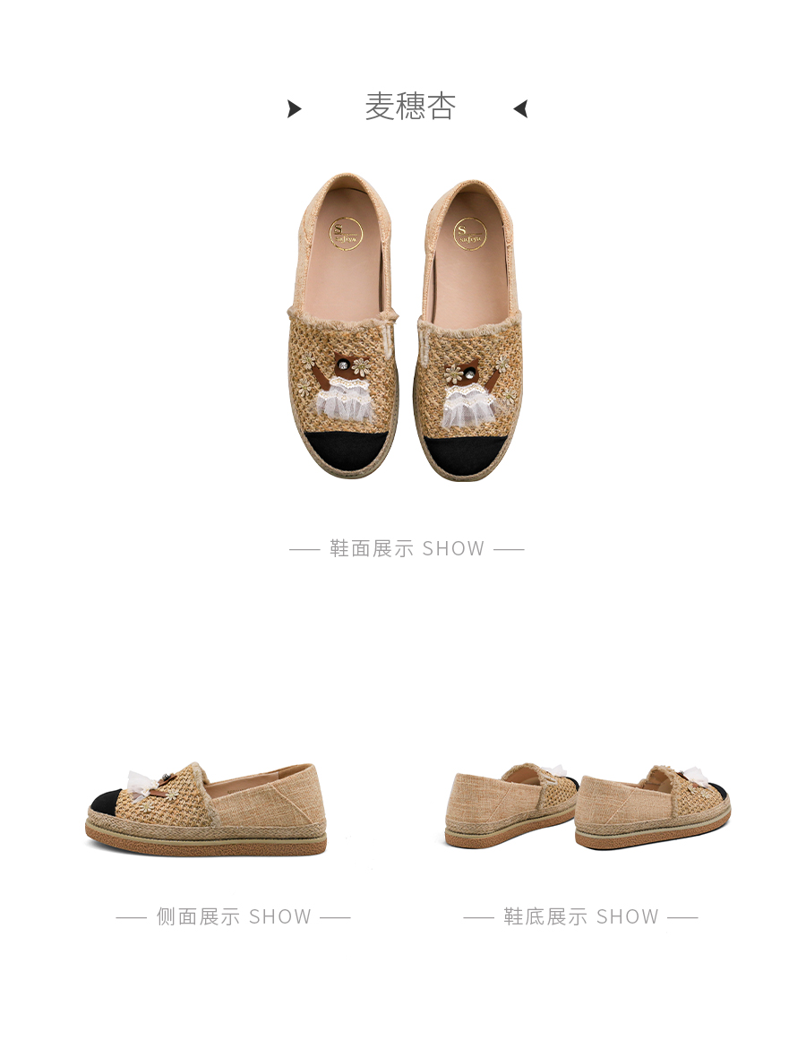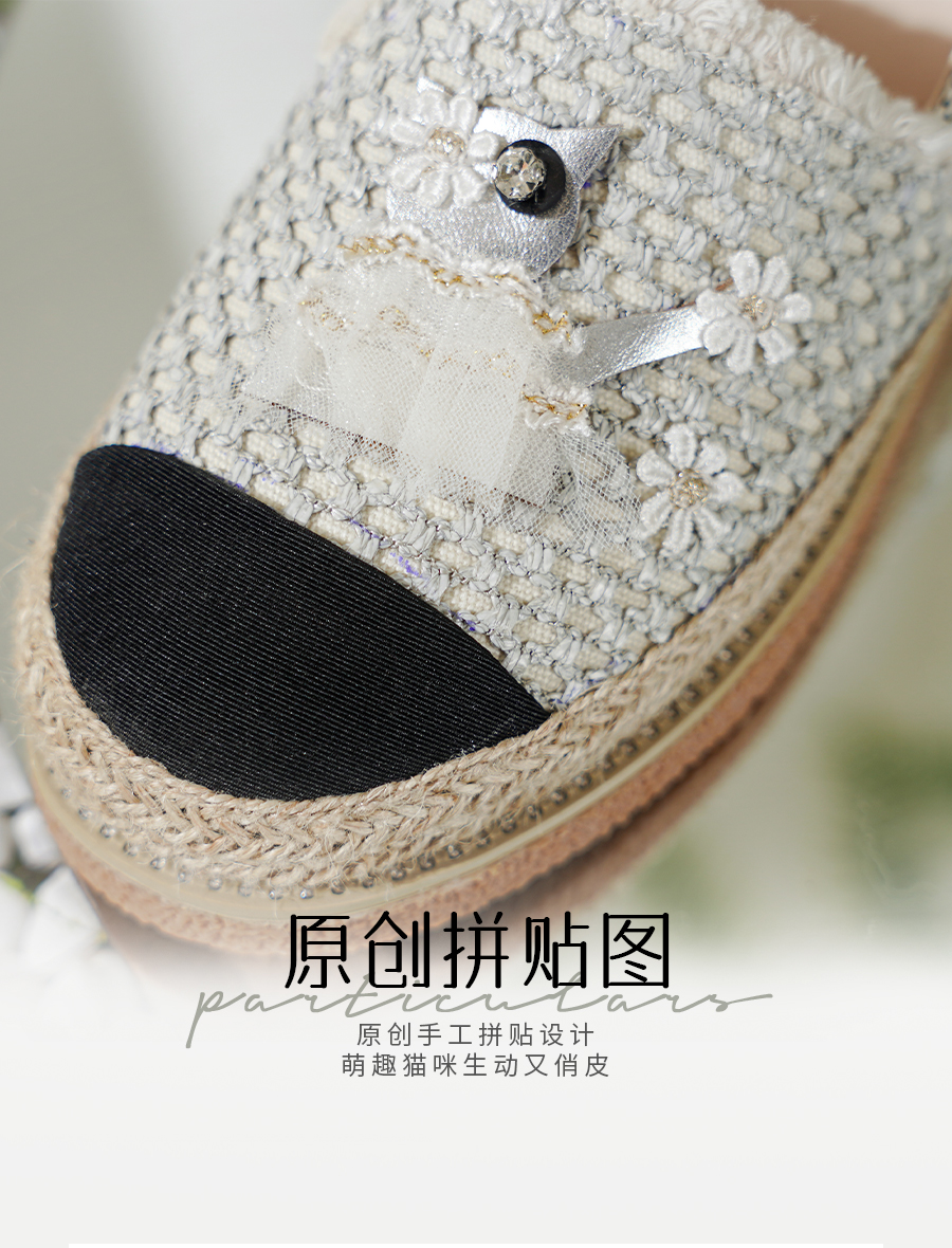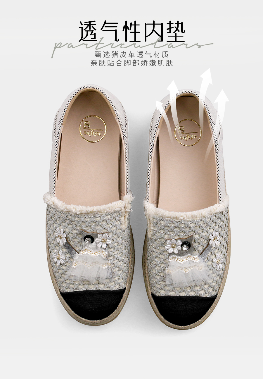 Safiya/索菲娅2025小香风猫咪立体拼贴平底百搭平底草编渔夫鞋SFD1112078