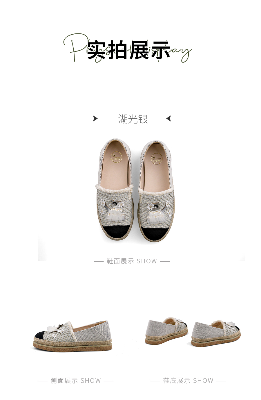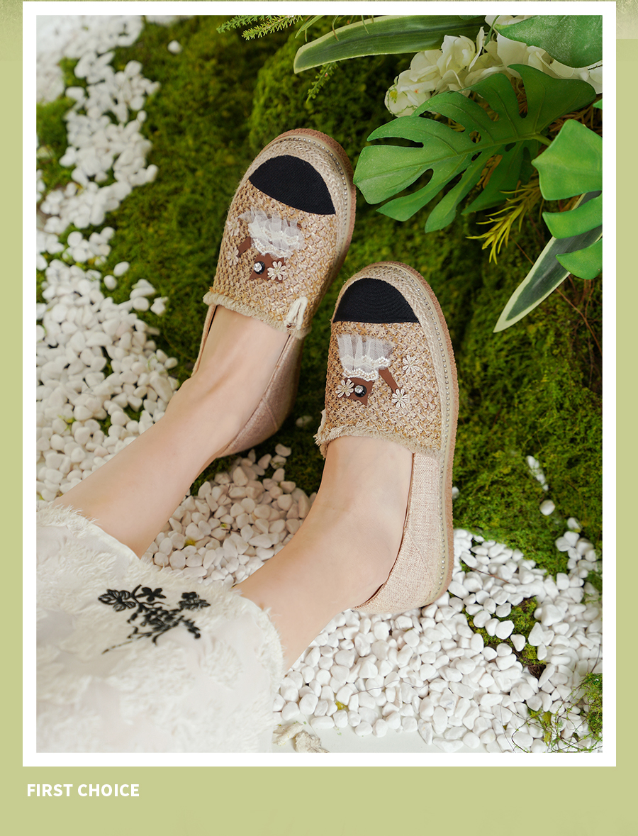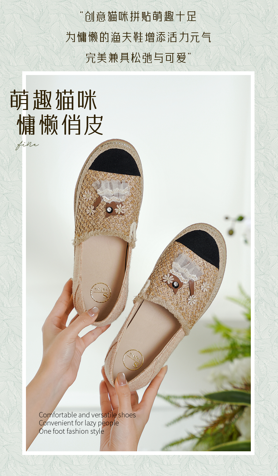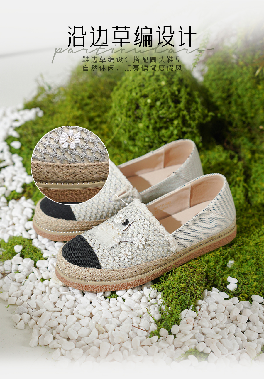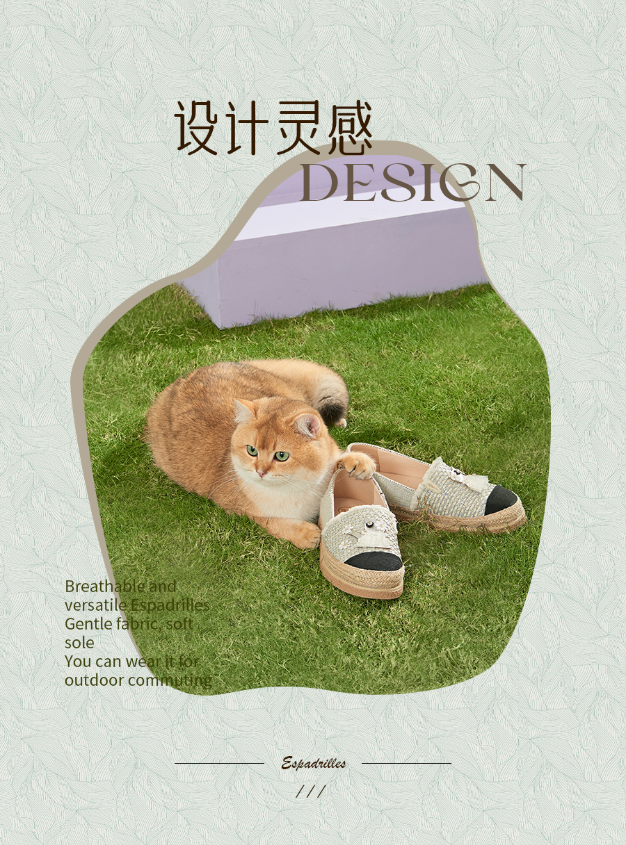 Safiya/索菲娅2025小香风猫咪立体拼贴平底百搭平底草编渔夫鞋SFD1112078