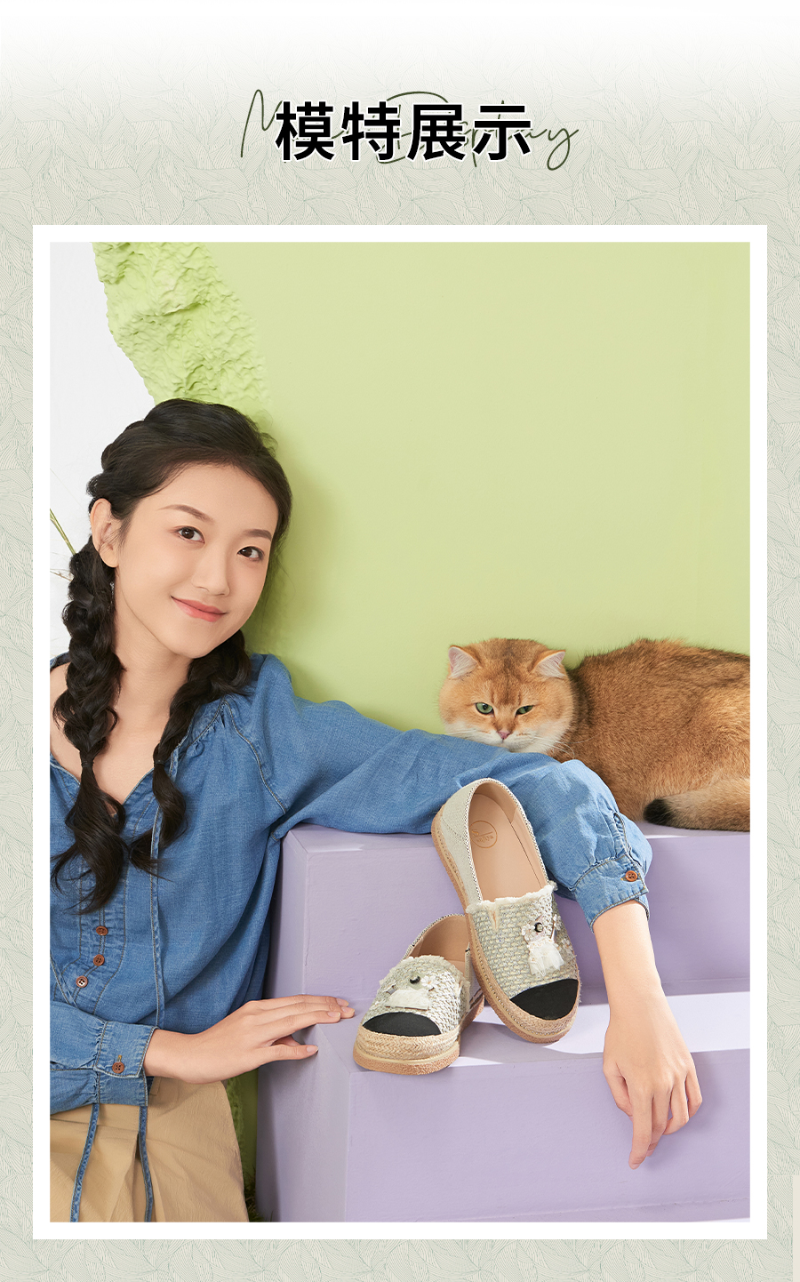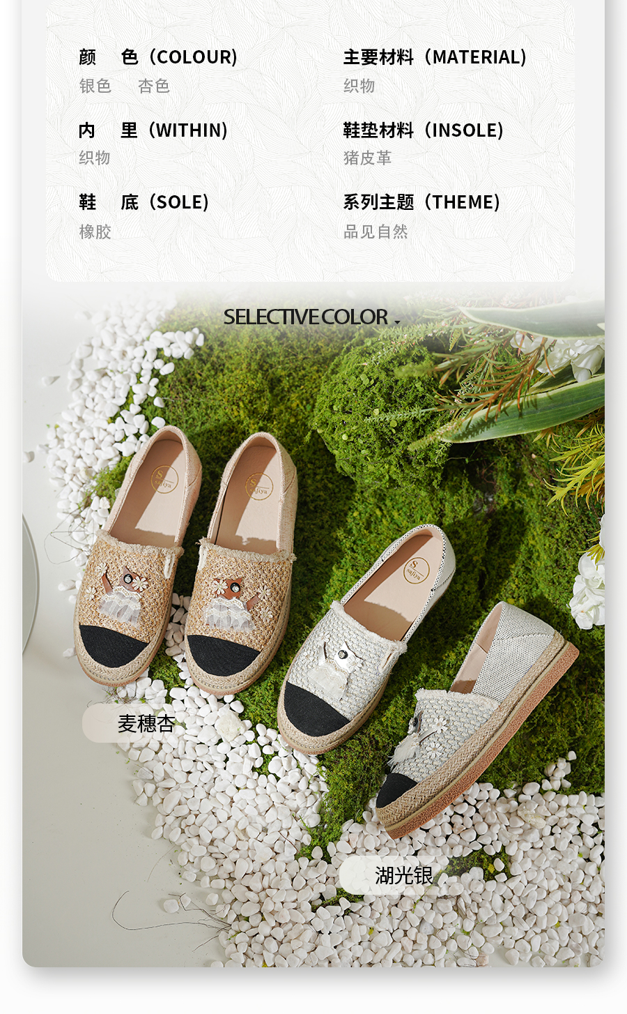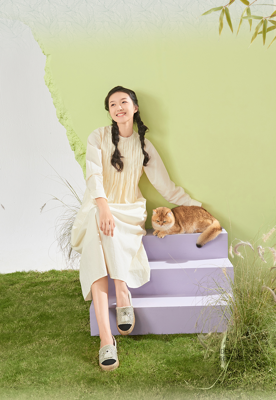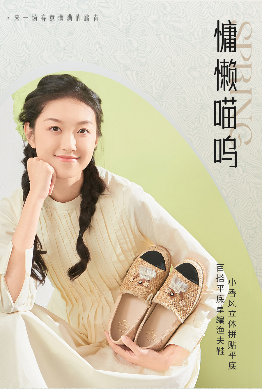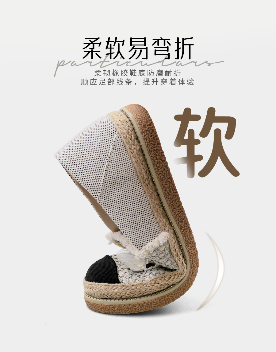 Safiya/索菲娅2025小香风猫咪立体拼贴平底百搭平底草编渔夫鞋SFD1112078