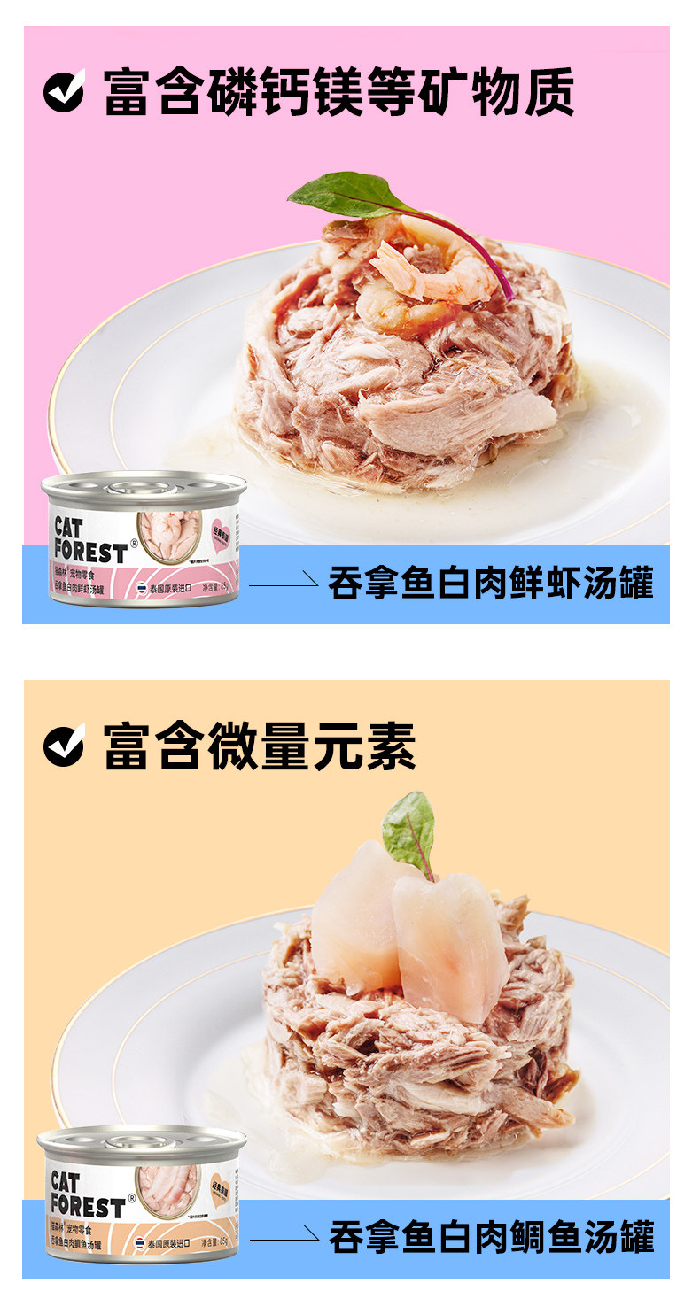 注意:猫森林白肉罐头新老包装升级中,拍下随机发,介意慎拍,感谢理解~
