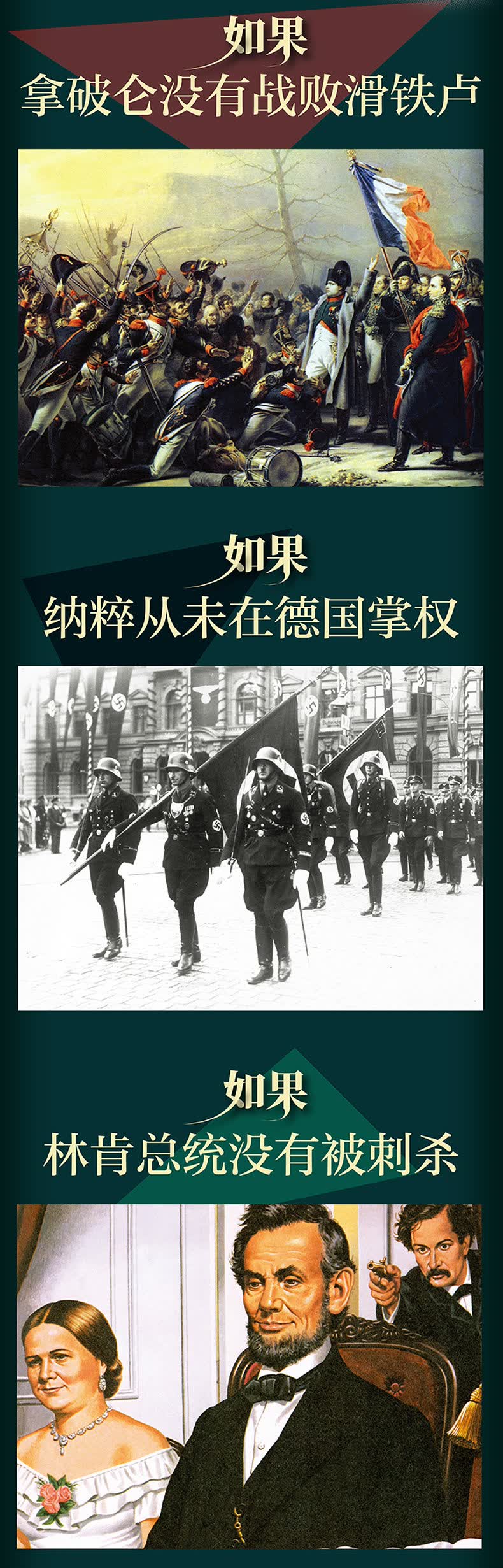 《如果历史可以重来》力邀各大欧美*院校及研究机构的学者,回答种种关于“如果”的历史问题,通过假设与推演,带你从别样的角度深入剖析历史。从历代君王到重要战役,从注定的历史趋势到风流人物。在历史的分岔口,如果命运选择了另一条路,世界又会如何发展?一目了然的“真假时间轴”,让不同的历史轨迹交相辉映,更有海量精美图片为你勾勒历史的“另一种模样”。
