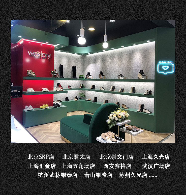 westory2018年冬季新款皮鞋内里加绒粗跟单鞋毛毛鞋女W284M80981