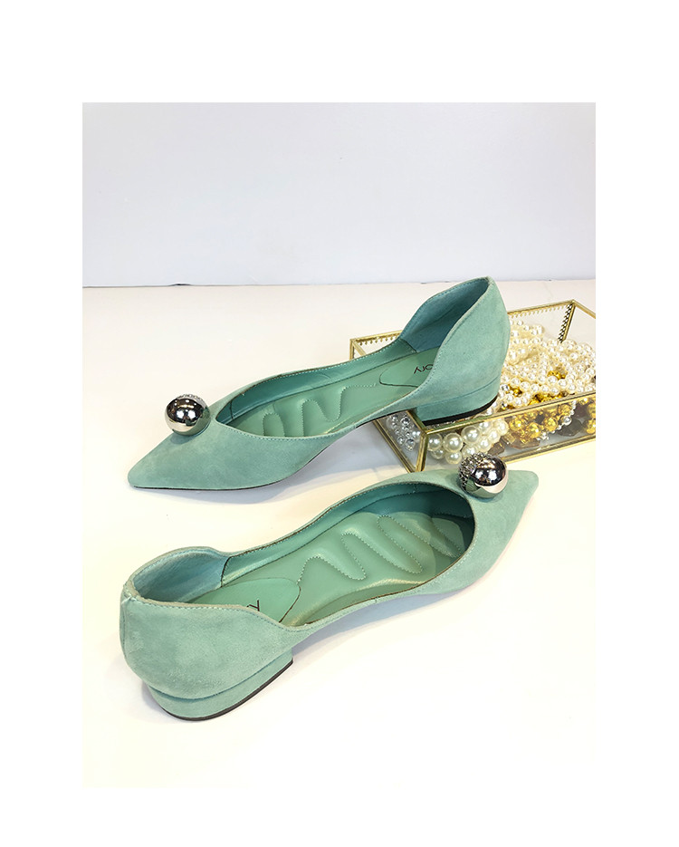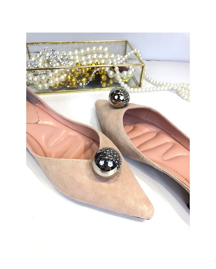 westory2021秋季新款水貂毛豆豆鞋金属扣式一脚蹬女鞋W21CM73751