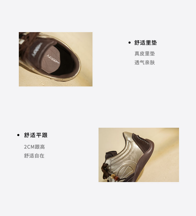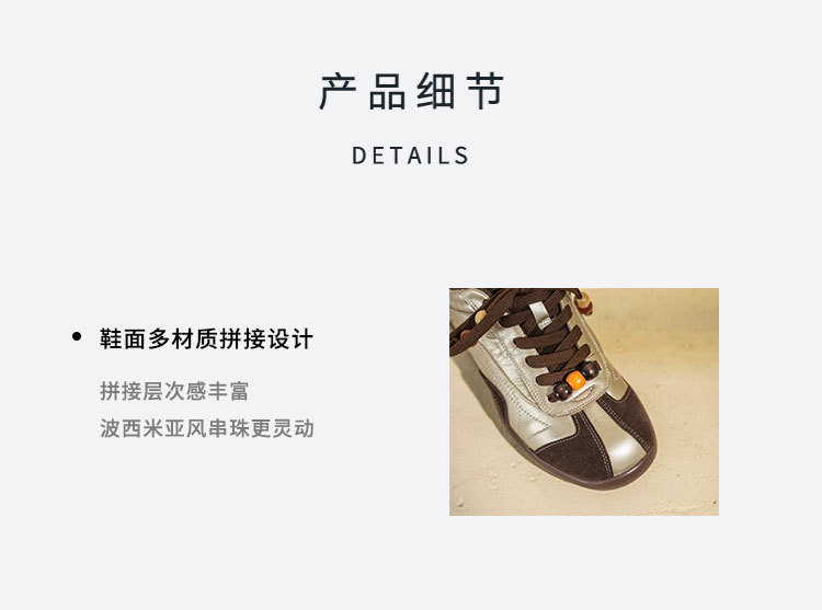 Westory2025年秋季波西米亚风多材质拼接休闲平跟系带运动鞋S25CM76831