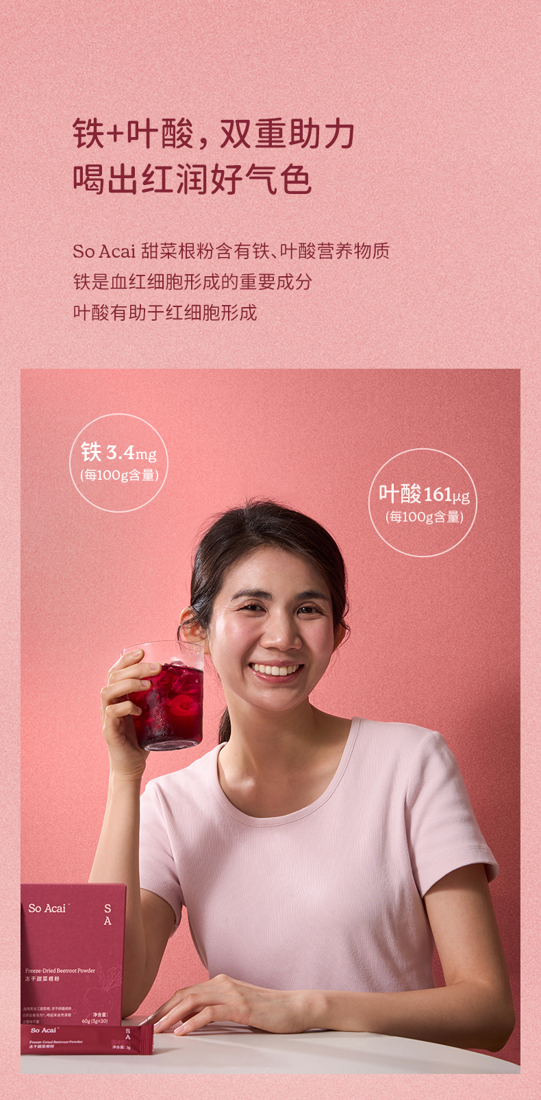 品牌直发 So Acai 冻干甜菜根粉 60g/单盒 两盒 三盒