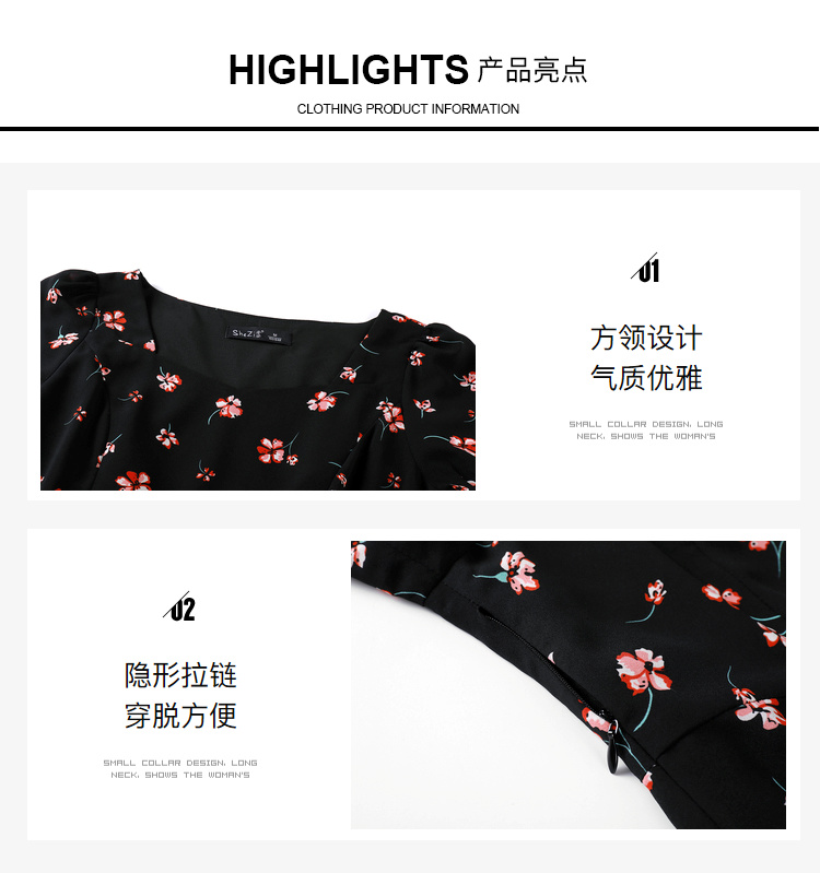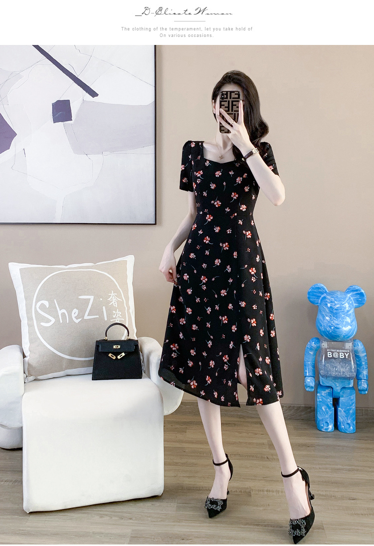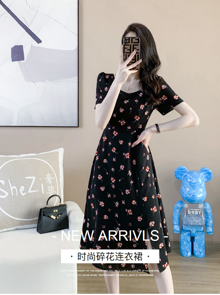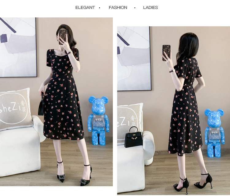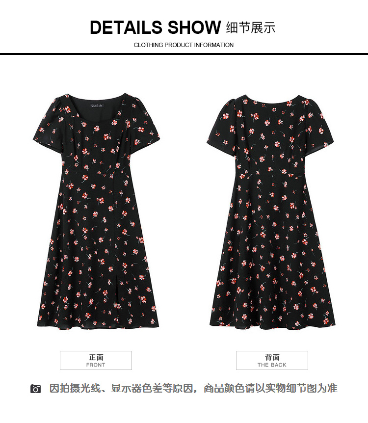 奢姿2024年夏装新款大码女装碎花减龄连衣裙胖妹妹方领时尚裙子9932866953