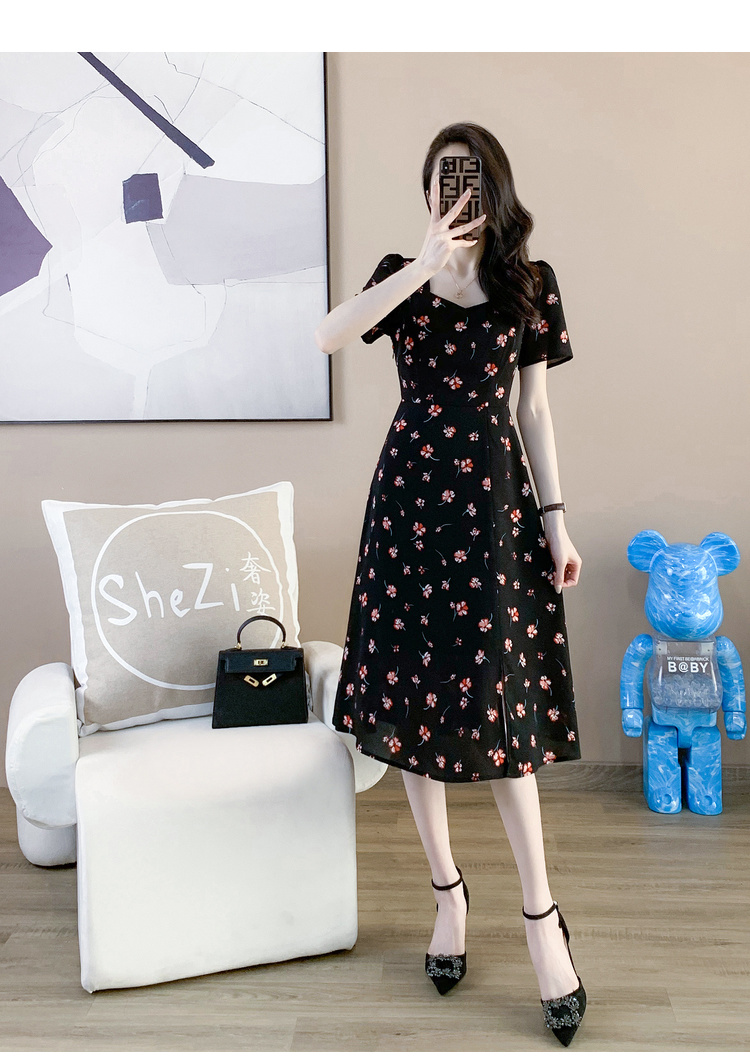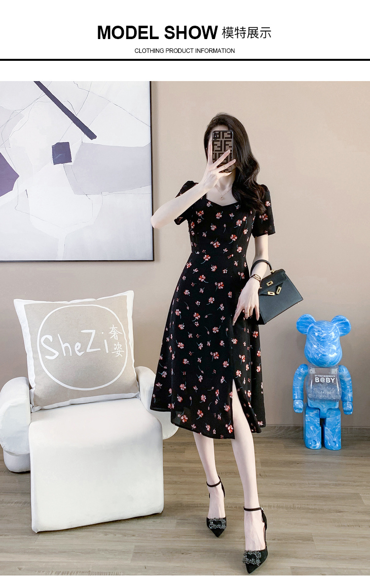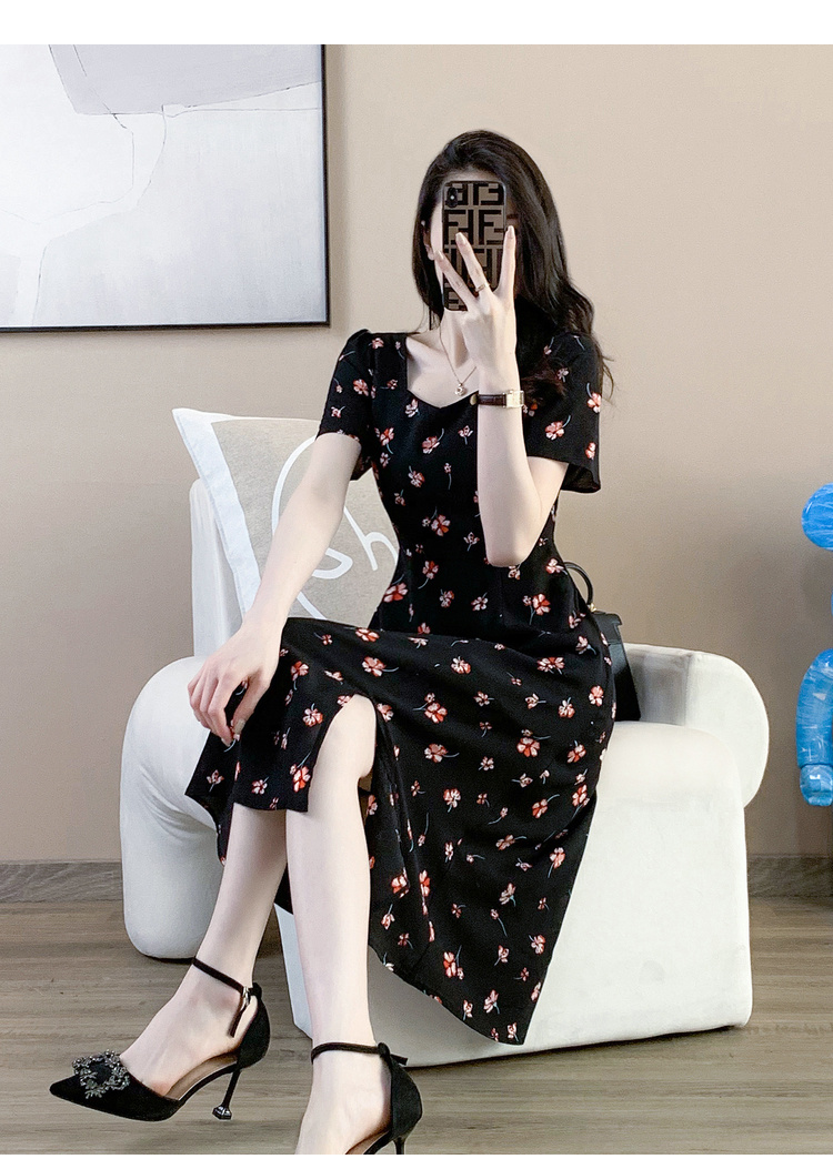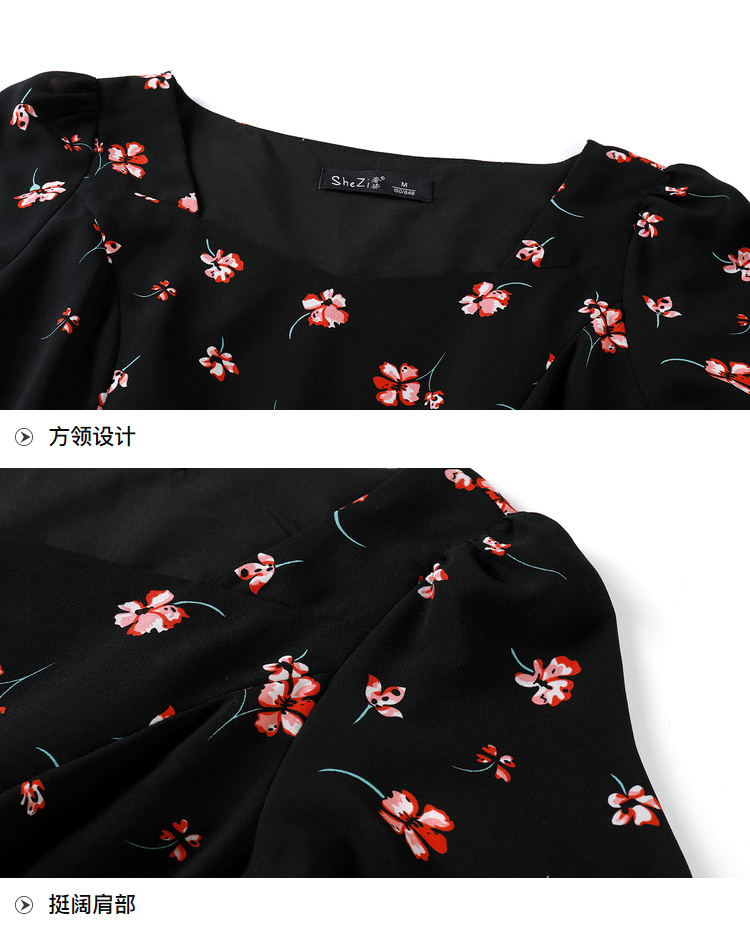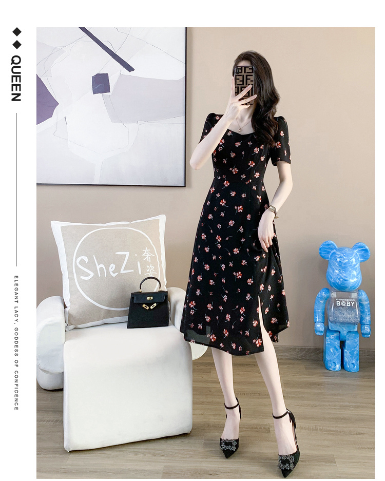 奢姿2024年夏装新款大码女装碎花减龄连衣裙胖妹妹方领时尚裙子9932866953