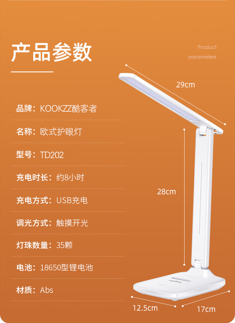 【分仓直发包邮】KOOKZZ酷客者LED折叠护眼台灯TD202