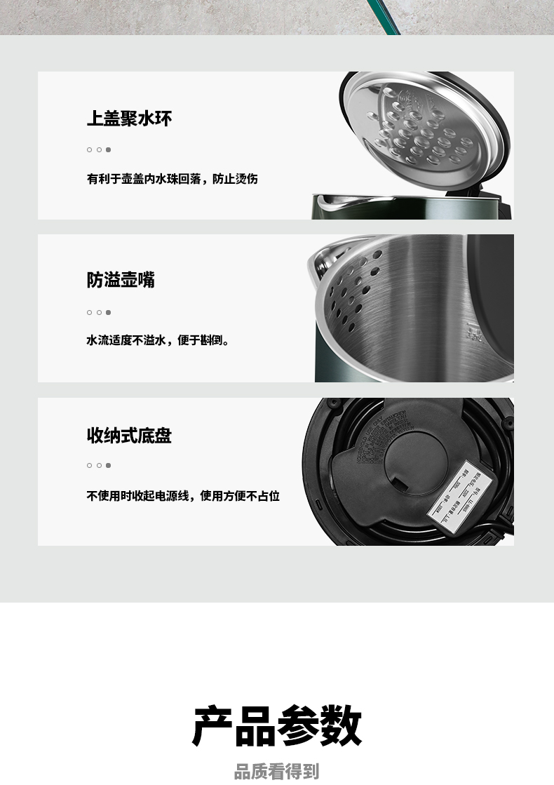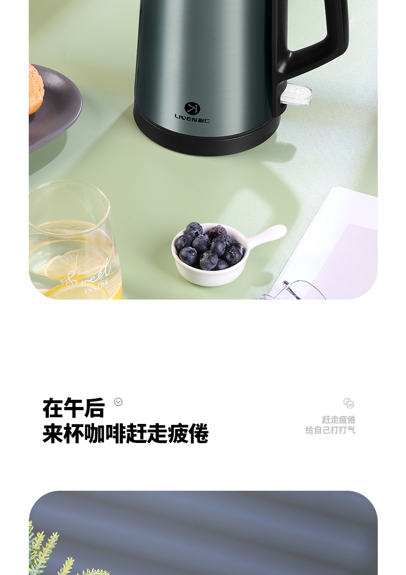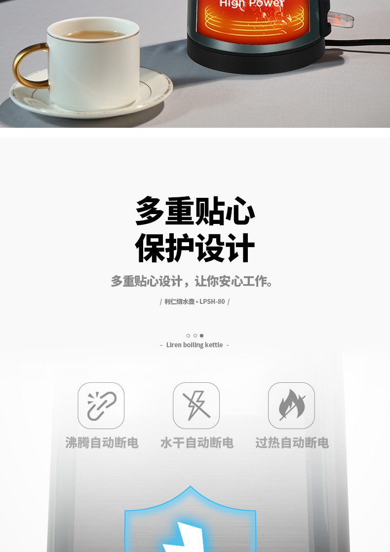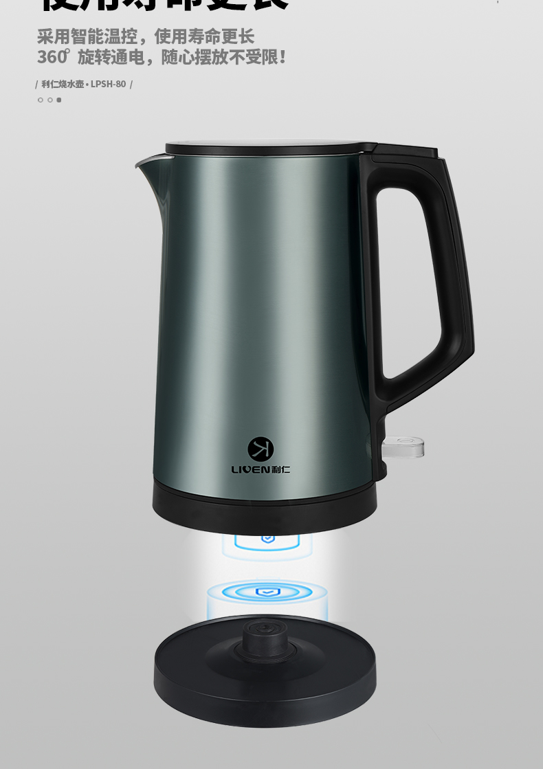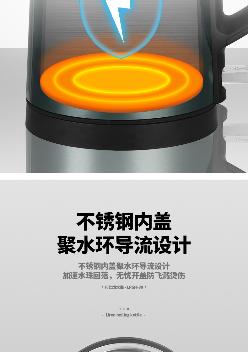 利仁电水壶热水壶烧水壶1.0L黄金容量双层防烫304不锈钢无缝全钢智能断电LPSH-80 电水壶