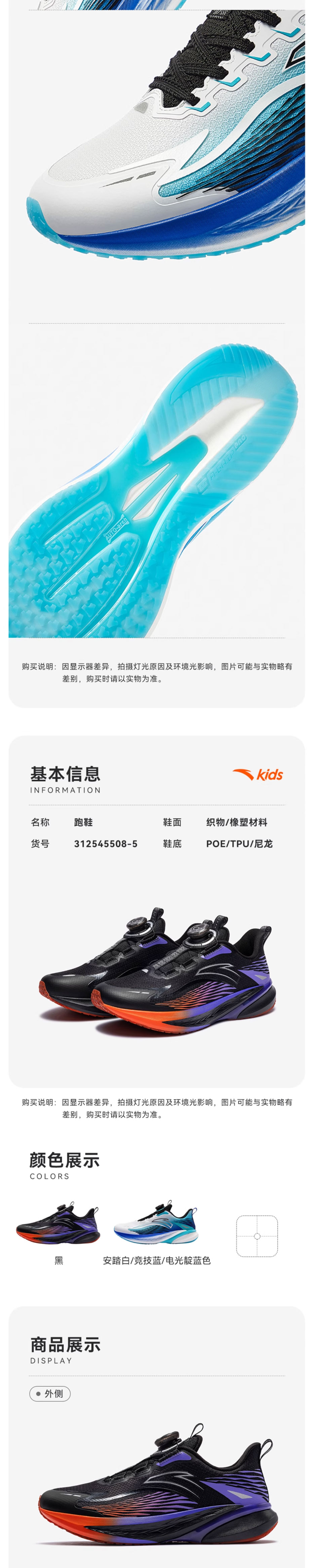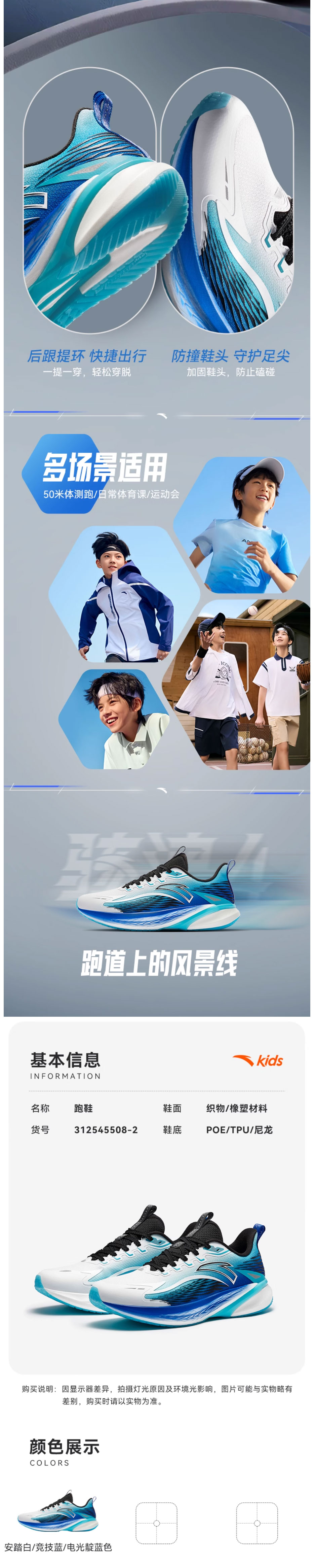 骇浪4.0安踏儿童男女大童跑鞋2025新防滑耐磨中大童运动鞋312545508-5