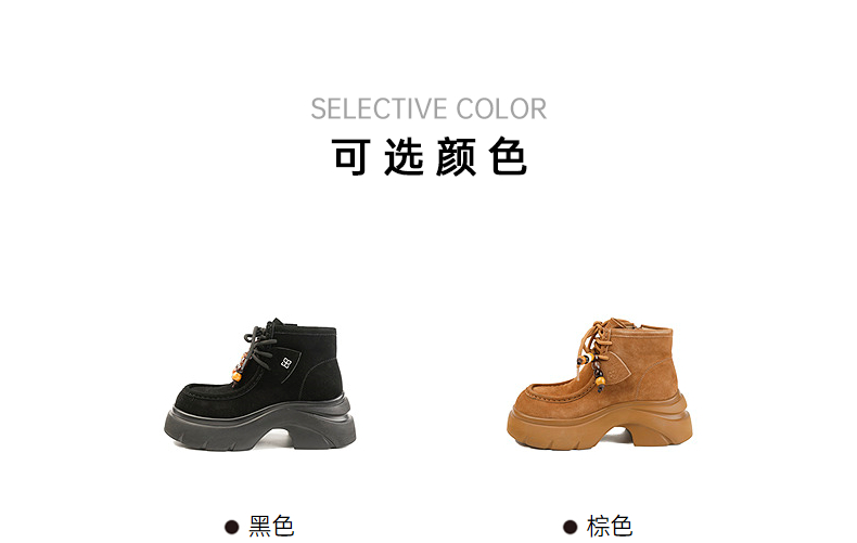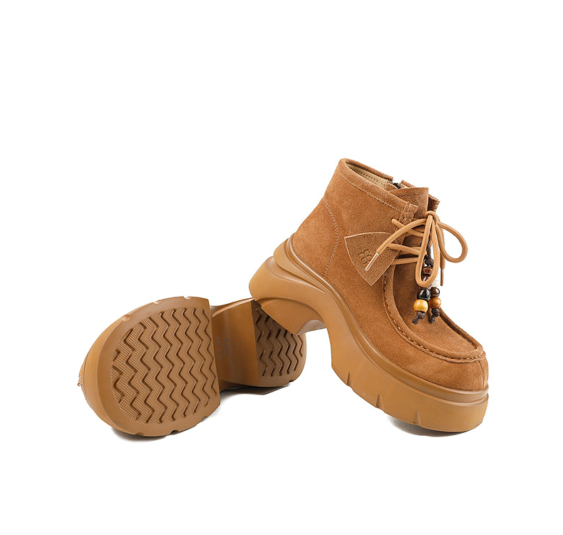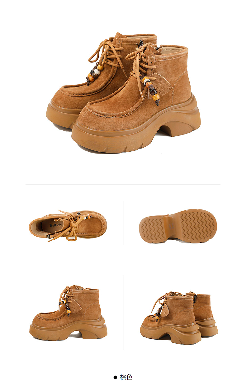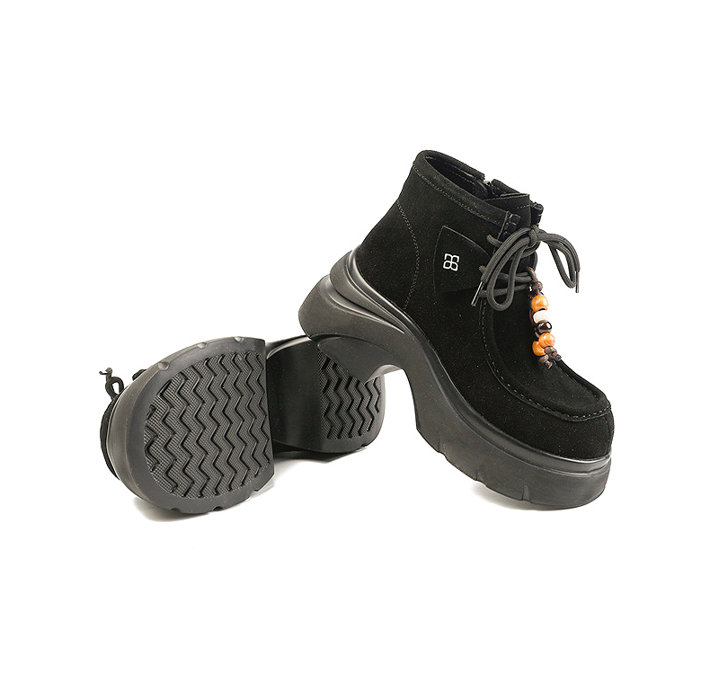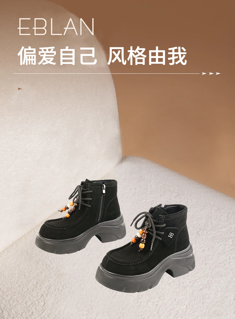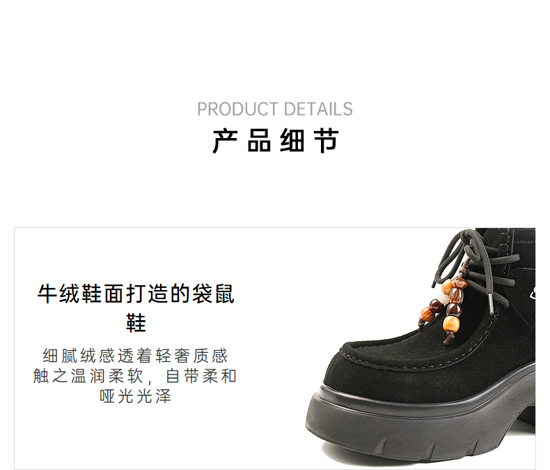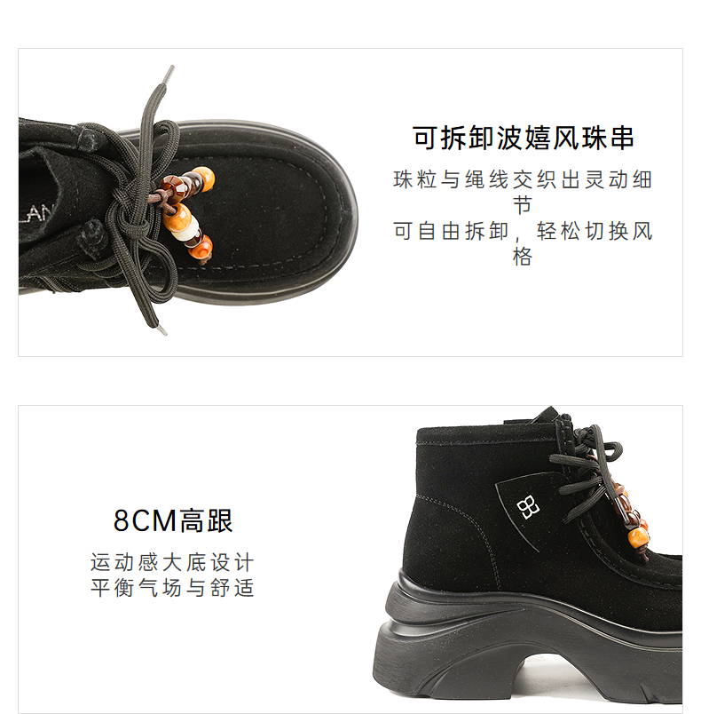 伊伴冬季牛绒鞋面高跟袋鼠鞋波嬉风珠串装饰袋鼠鞋B25583501