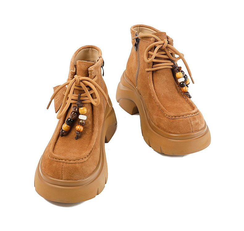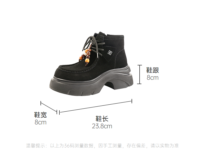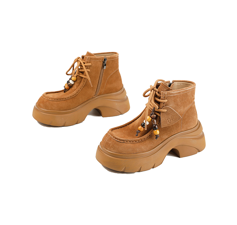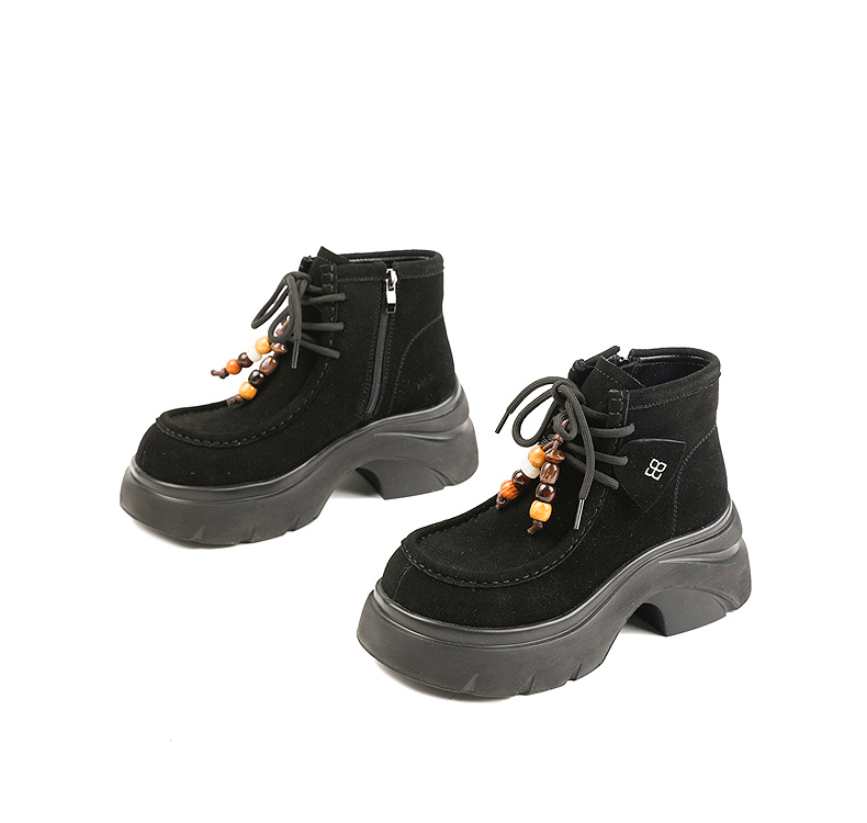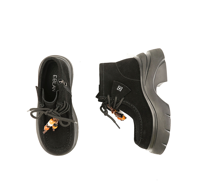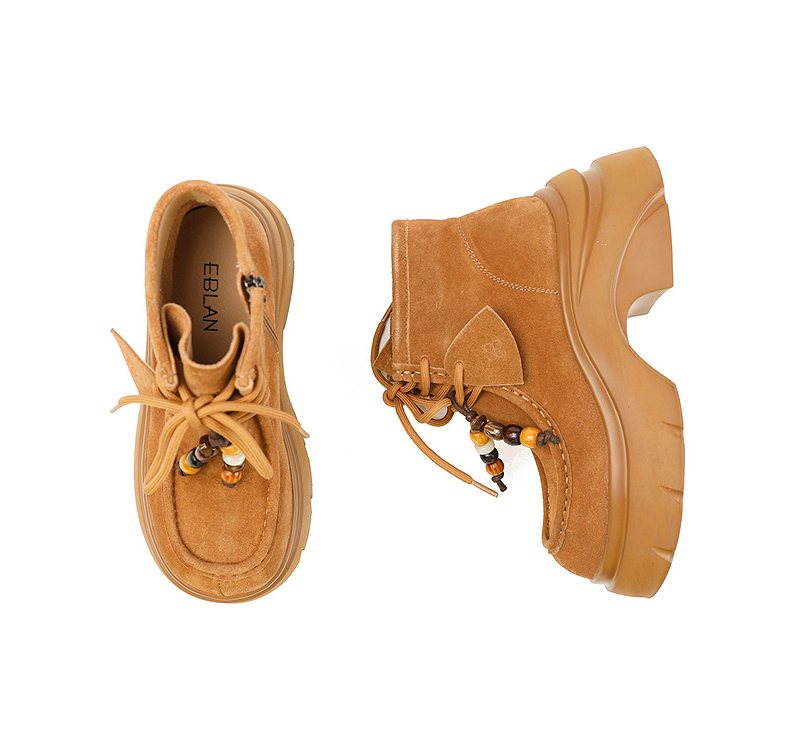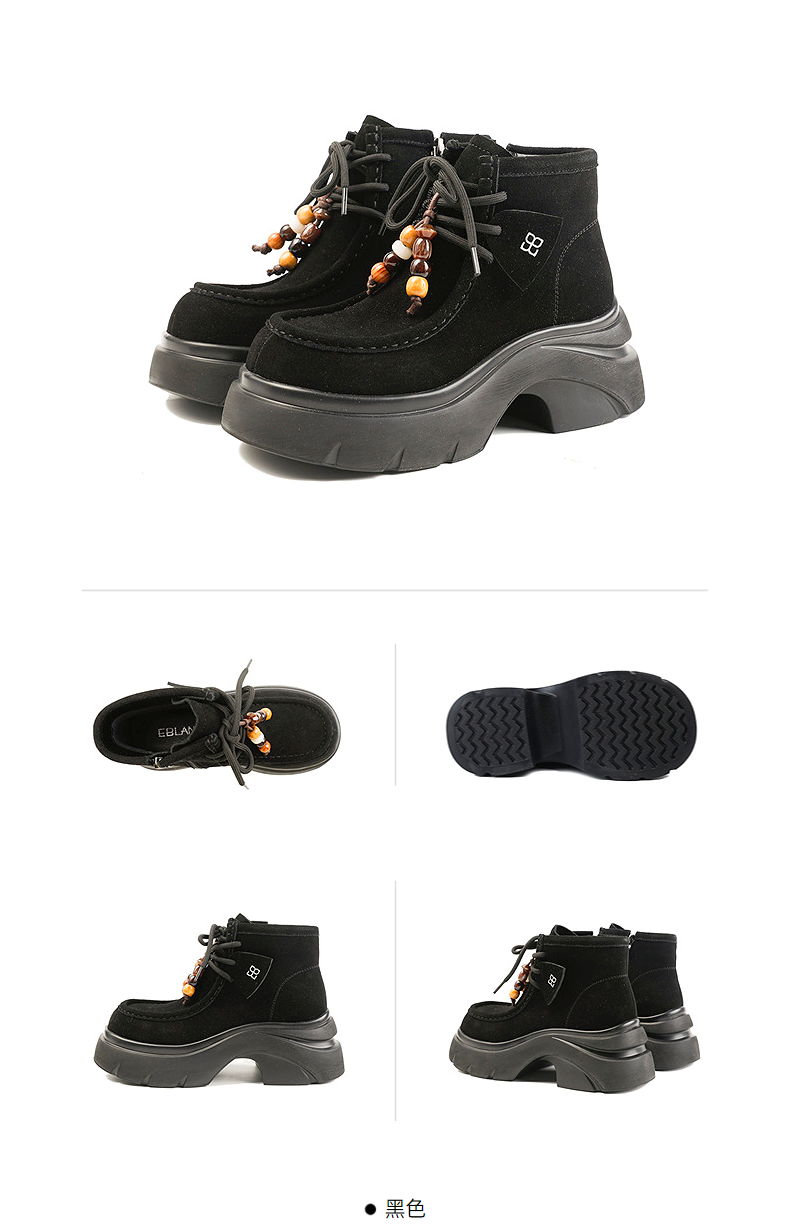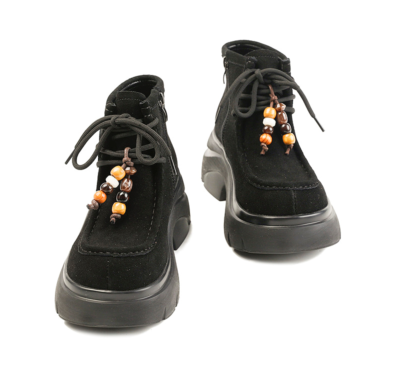 伊伴冬季牛绒鞋面高跟袋鼠鞋波嬉风珠串装饰袋鼠鞋B25583501