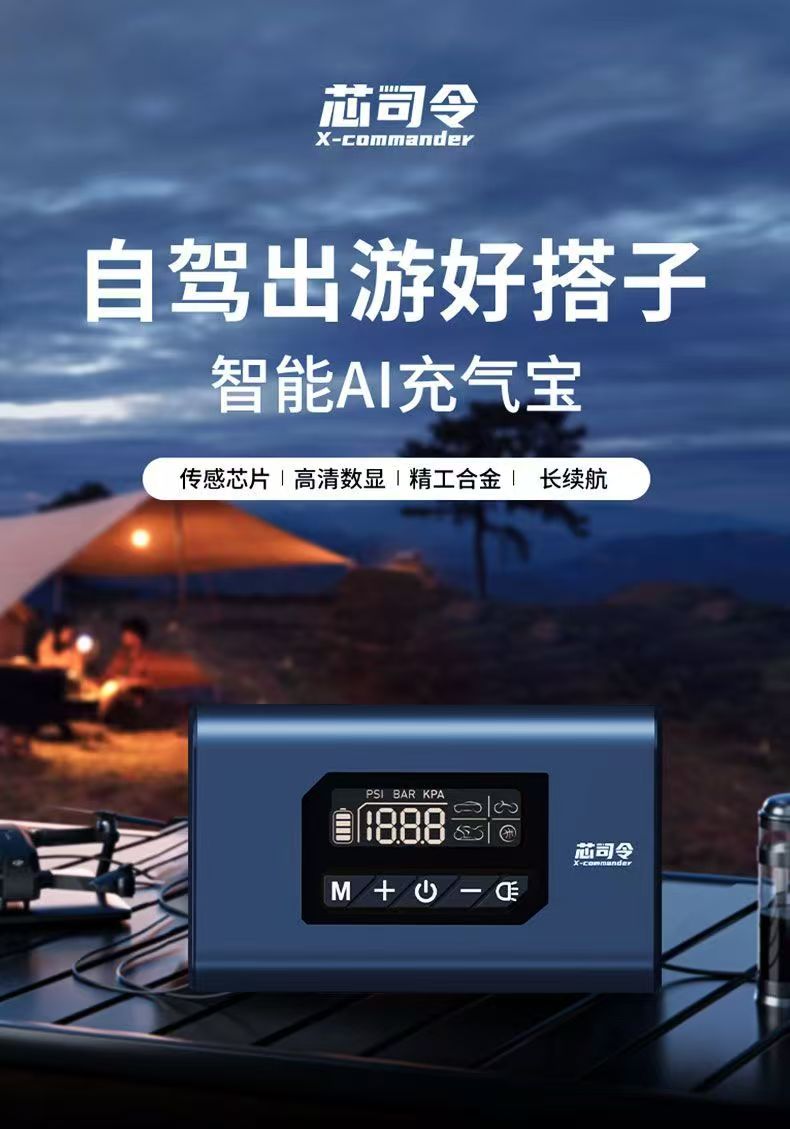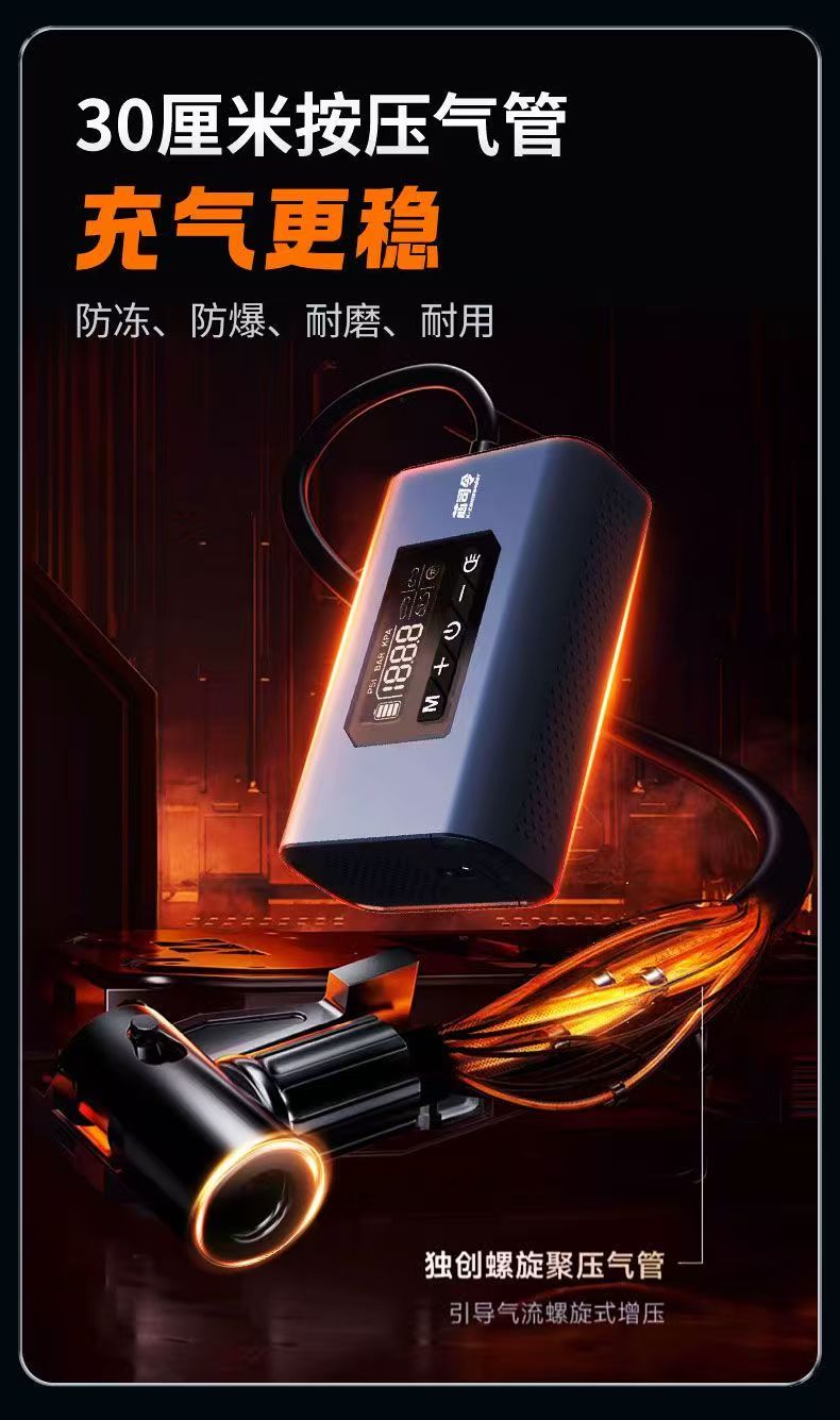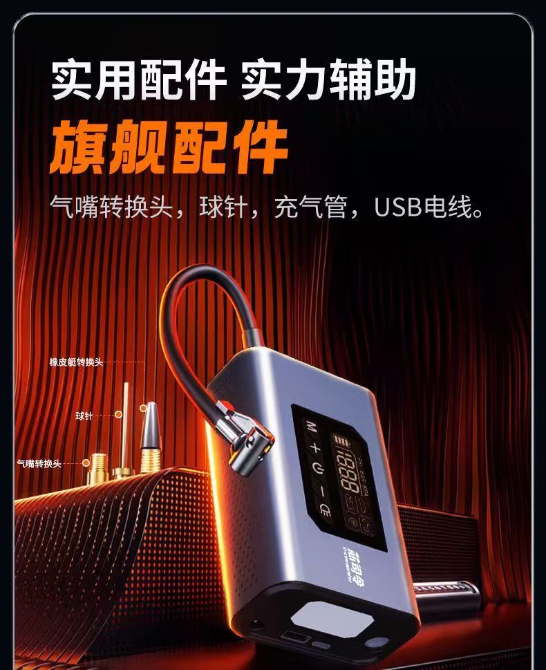 芯司令电动充气泵车载必备便携式数显精测胎压大功率无线充气泵