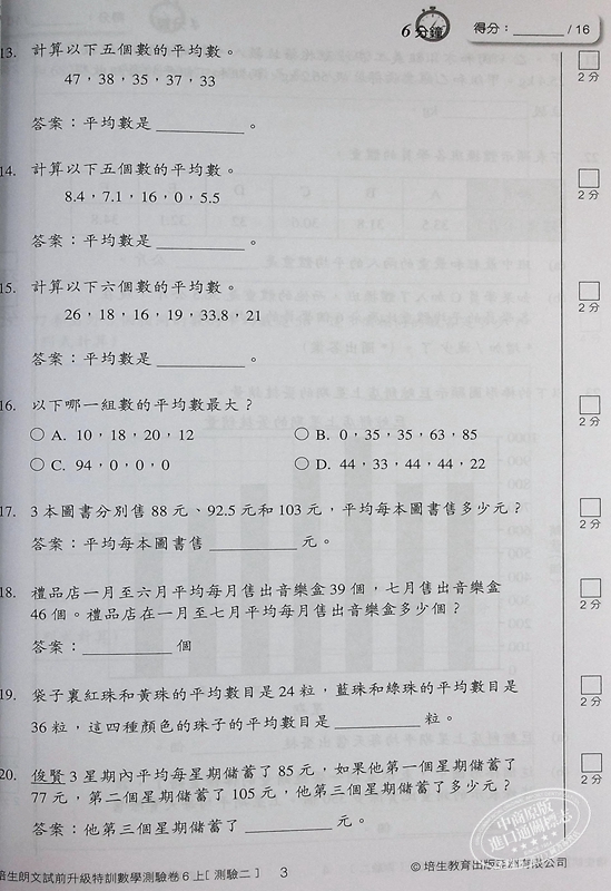 【中商原版】培生朗文 试前升级特训数学测验卷 修订版 六上 數學測驗卷 Pearson Longman 六年级上册 港台原版 练习教辅