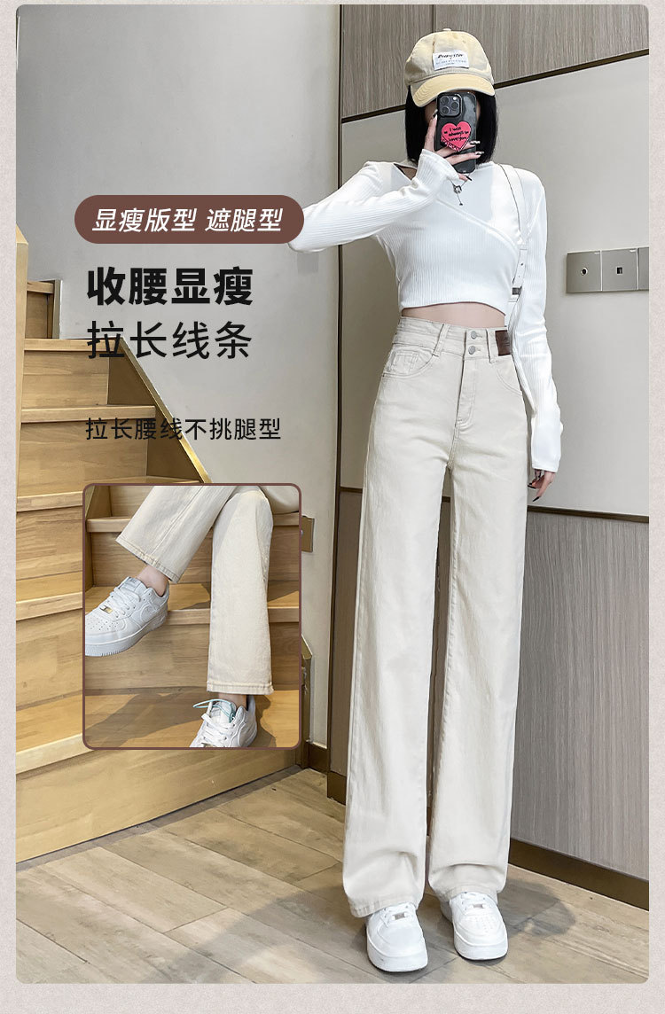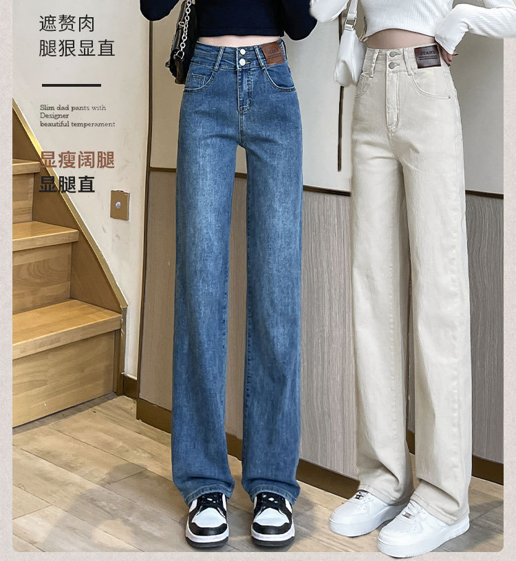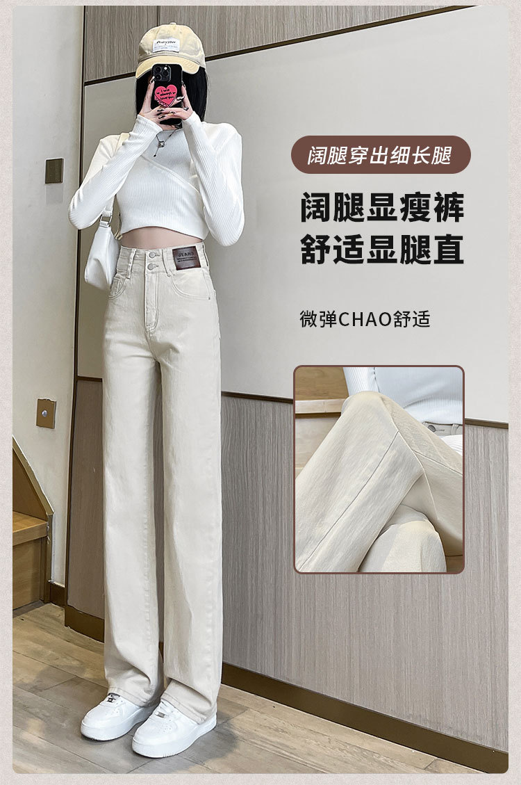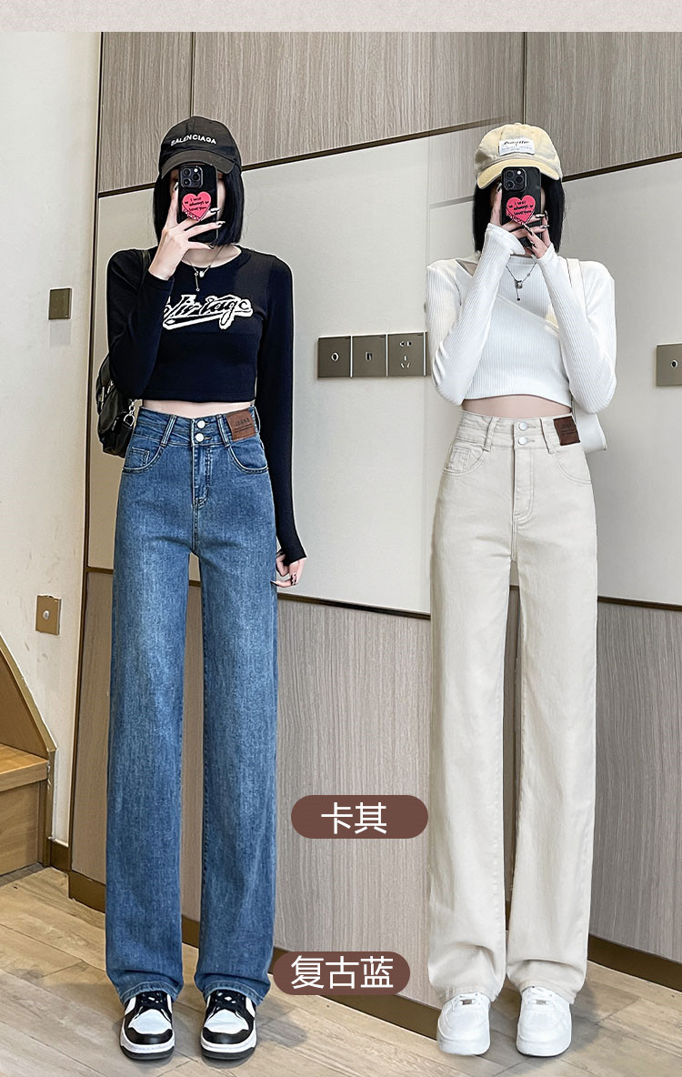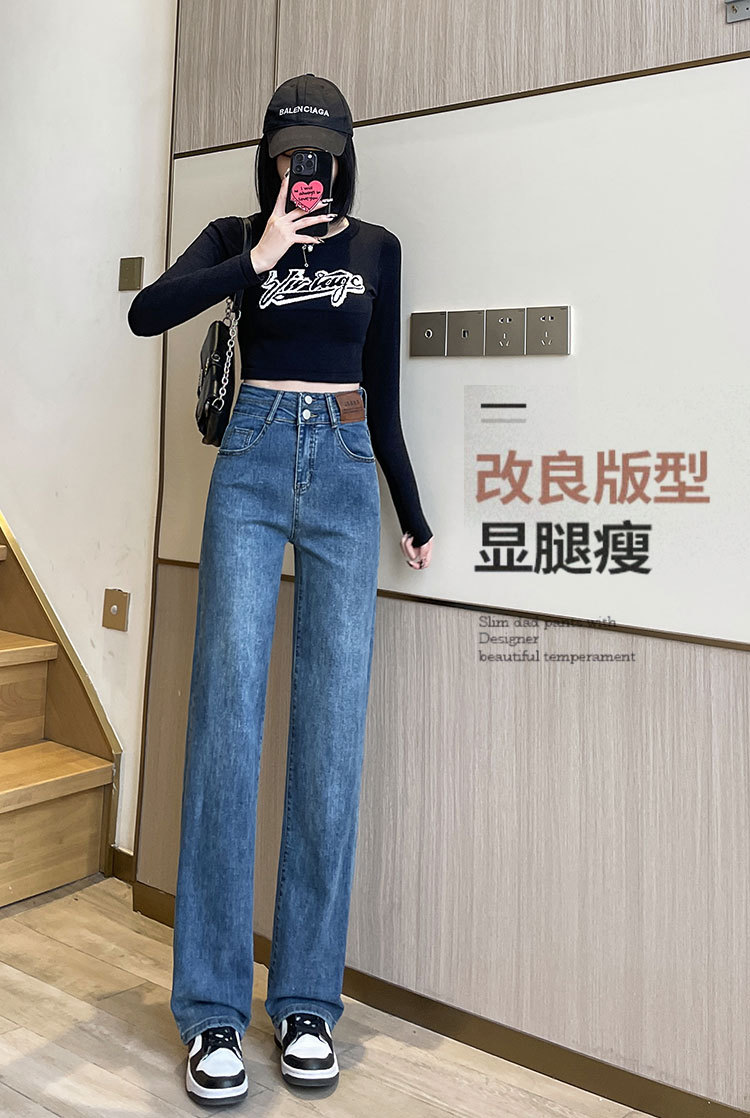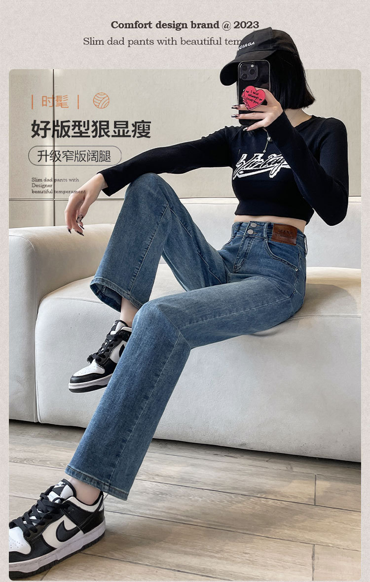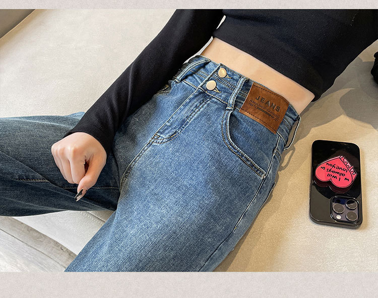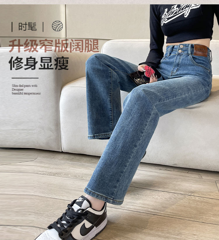 窄版直筒牛仔裤女高腰2023年新款春秋装显瘦修身烟管窄版阔腿长裤8332#