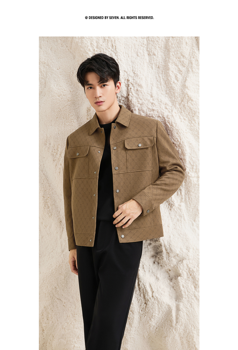 【满身提花工装茄克】柒牌翻领夹克2025秋季弹力柔软都市时尚外套129K70730