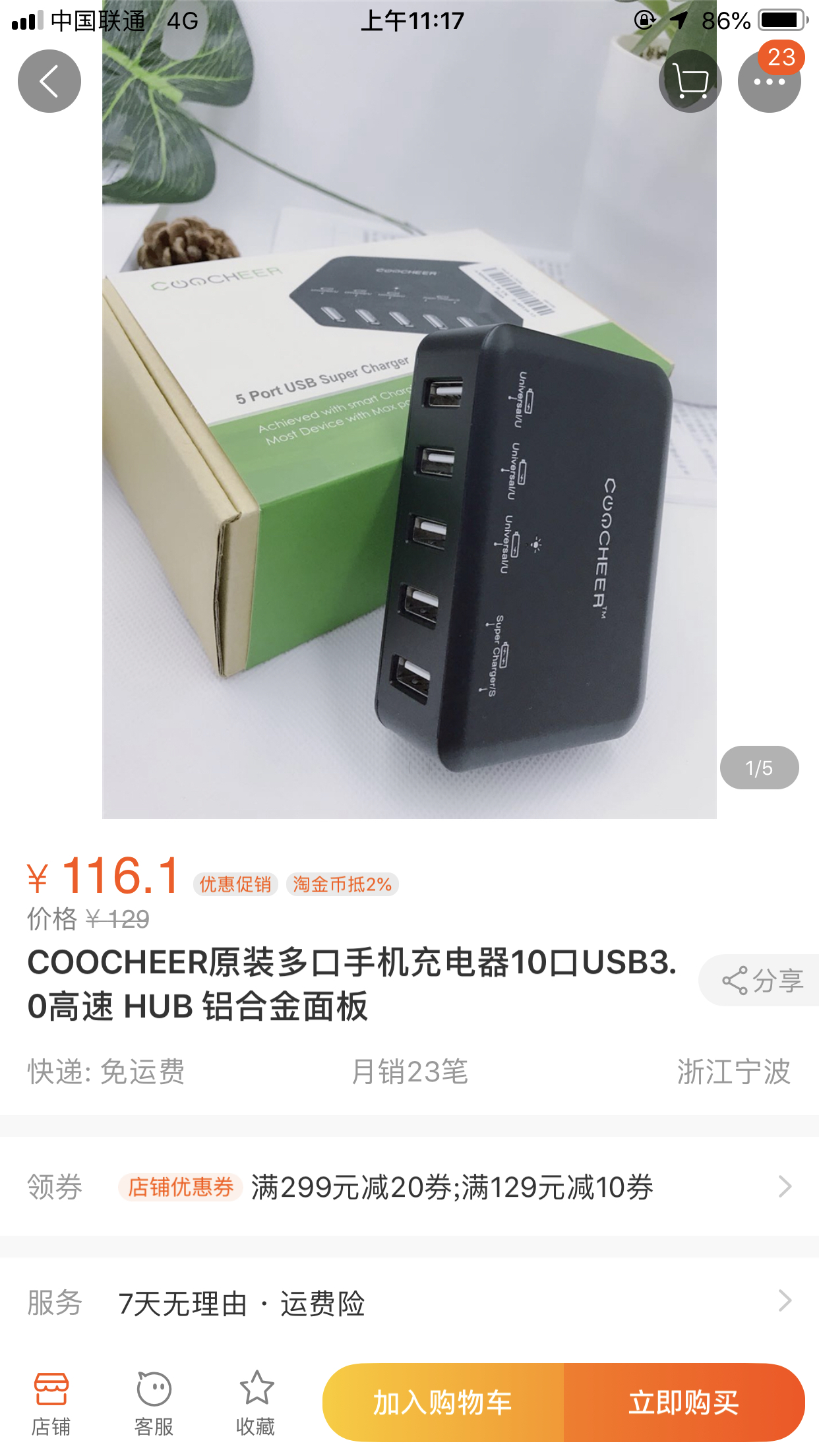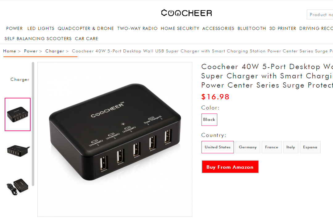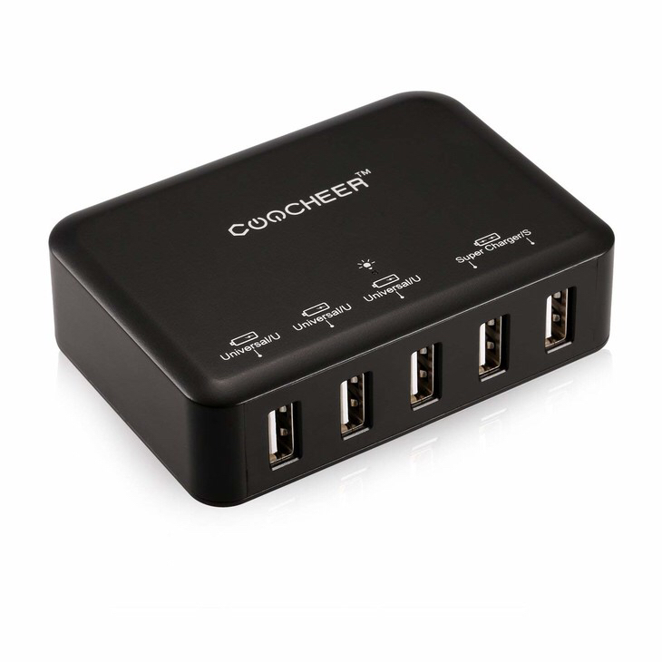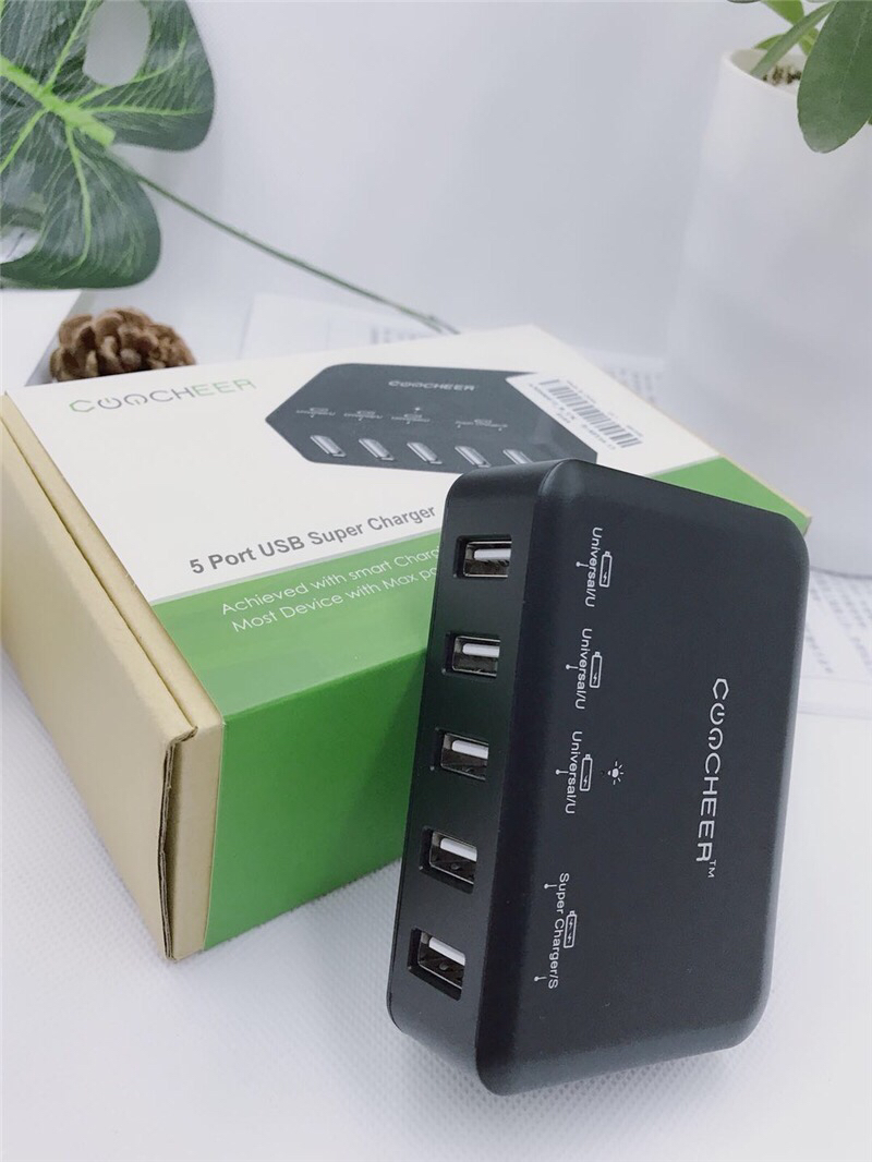说明:美国品牌coocheer,5口usb充电器,40w/110v-220v全球通用电压/2个2.4A+3个1A输出,做工扎实,非山寨小品牌可比。