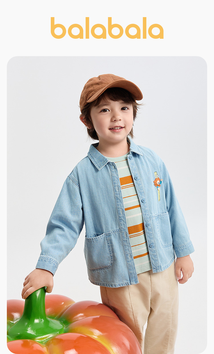 巴拉巴拉balaOne宝宝衬衫纯棉牛仔外套男童女童2025新款秋装宽松